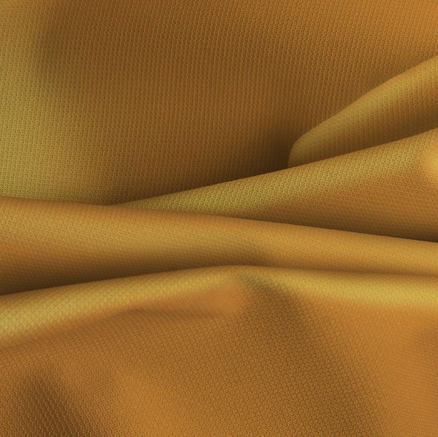 La tela base es la Tela Cortavientos Impermeable - Target, un tejido técnico de poliéster 100%, con un gramaje de 116 gr/m2 y un ancho de 145 cm. Este tejido tiene un acabado impermeable que lo hace idóneo para prendas deportivas de invierno, como chaquetas, plumíferos o chubasqueros. El color liso impreso es Naranja Cadmio, que se consigue con una tecnología de impresión por sublimación de tinta, aplicada a una sola cara del tejido. De los valores de CMYK (7 44 83 0), se puede deducir que la tinta principal es la amarilla, seguida del magenta y con un porcentaje bajo de cian. El resultado es un naranja vivo, que destaca por su luminosidad y vitalidad.