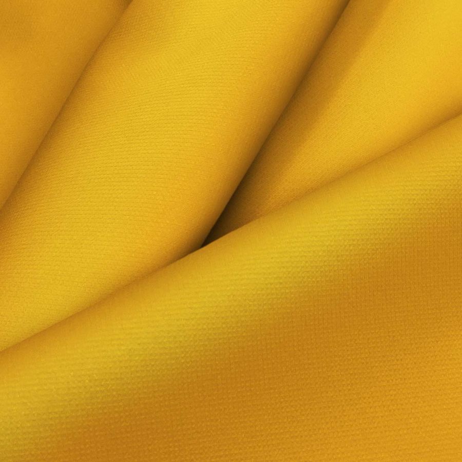 El amarillo caléndula tiene una gran afinidad con el blanco, el azul, el verde y el naranja, lo que lo hace ideal para combinaciones frescas y coloridas. La tela base de este tejido es impermeable y tiene un acabado delgado, lo que le da una textura suave al tacto. La impresión digital textil se realiza a una sola cara, lo que significa que el color liso solo se ve por un lado de la tela.