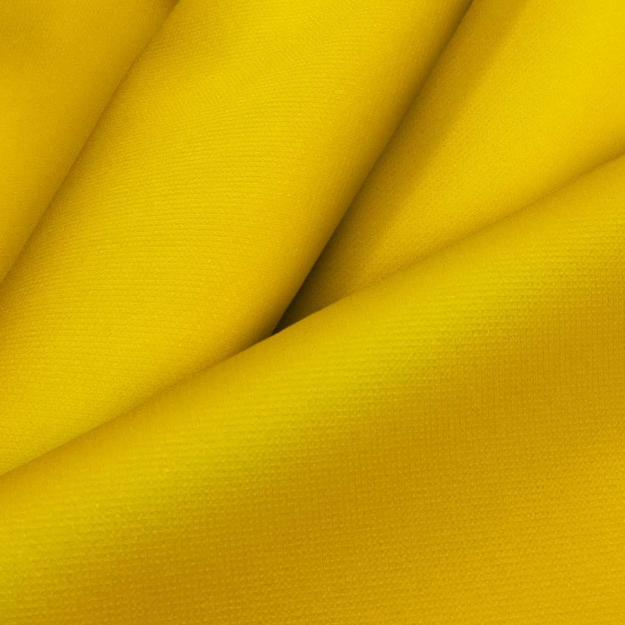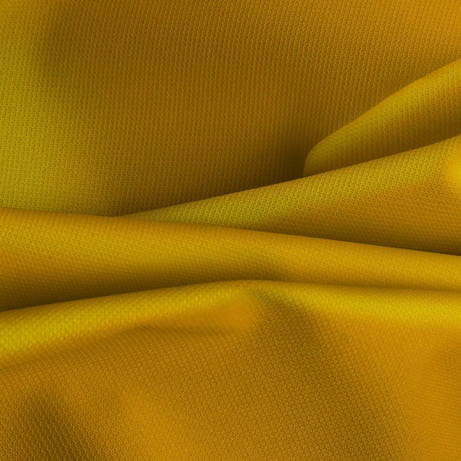 La tela base es la Tela Cortavientos Impermeable - Target, un tejido técnico de composición 100% poliéster con un gramaje de 116 gr/m2 y un ancho de 145 cm. Su color liso impreso es Amarillo Melón con un CMYK de 2 38 96 0. Este color secundario es vibrante, cálido y vistoso, inspirado en la pulpa del melón. El amarillo melón se puede combinar muy bien con tonos marrones y tierras, verdes y azules océano, siendo un color refrescante y veraniego.