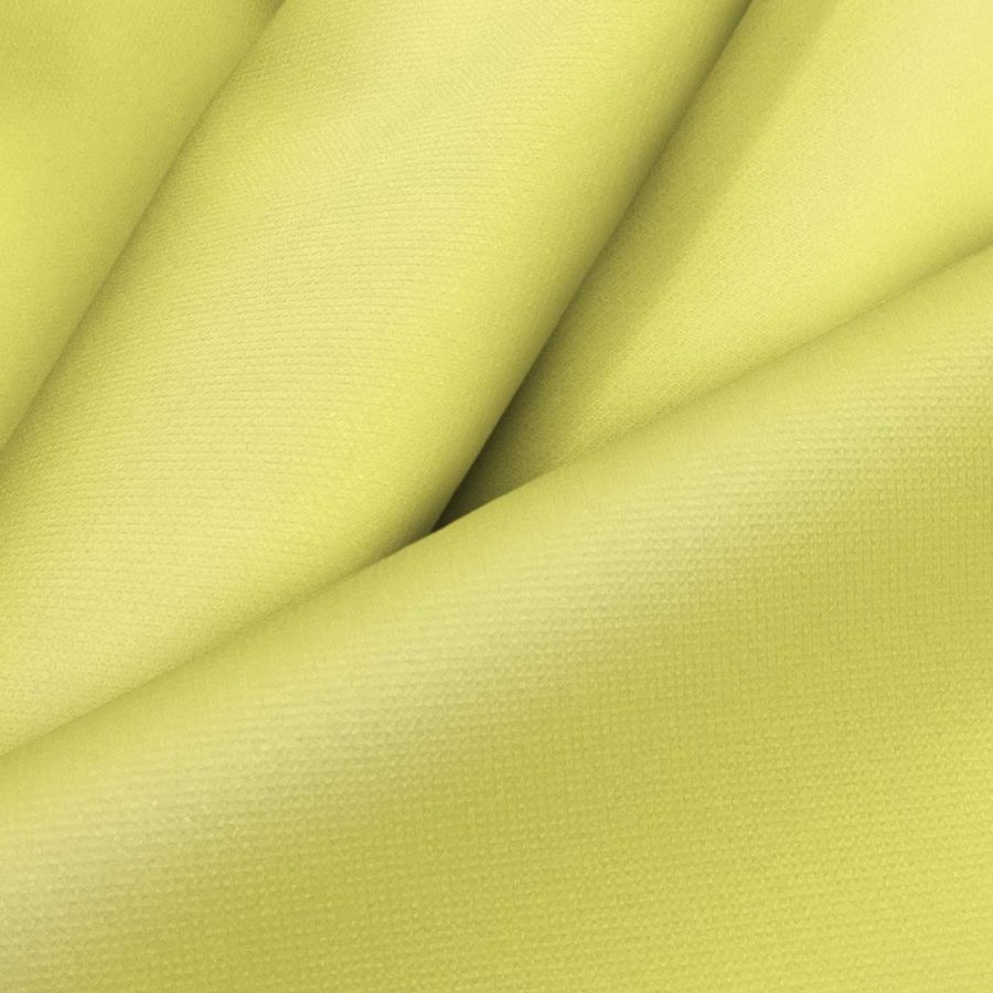 Las características generales de nuestra tela base son su impermeabilidad, su delgada textura y sus atributos deportivos, perfectos para prendas de invierno. Por otro lado, el color liso impreso destaca por su tono amarillo con un toque de cian que lo hace perfecto para prendas modernas y que transmitan energía.