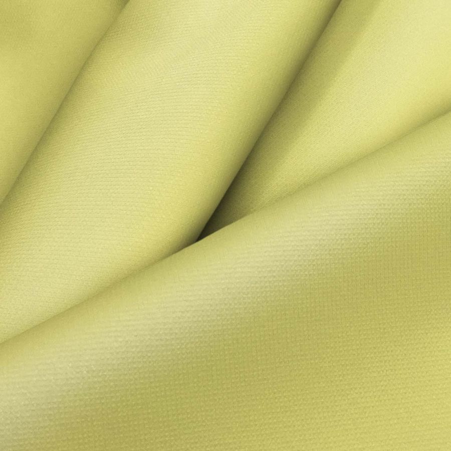La tela base es la Tela Cortavientos Impermeable - Target, un tejido técnico con composición de 100% poliéster y un gramaje de 116 gr/m2. El ancho de la tela es de 145 cm y su color liso impreso es amarillo paja, con un CMYK de 15 8 66 0. Este color secundario es brillante y alegre, pero su tonalidad suave lo hace fácil de combinar con otros colores, como marino, gris y negro. Se debe tener en cuenta que la tela está impresa con el color liso solo por una cara, mediante impresión digital textil.