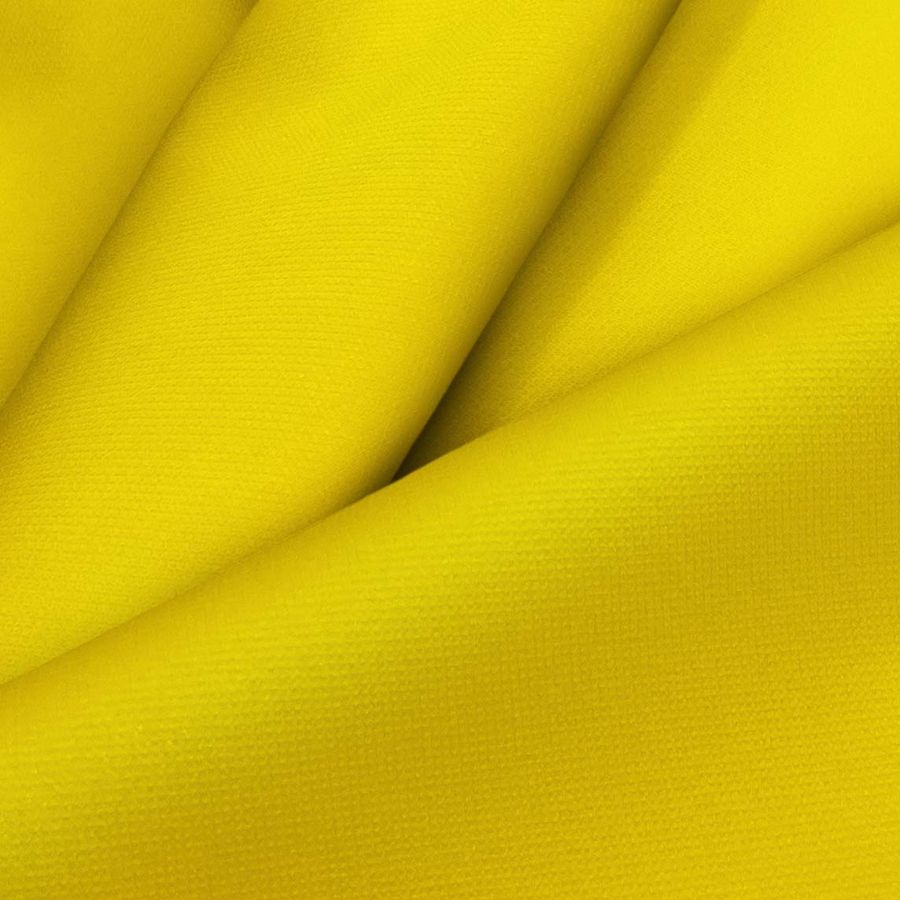 La tela base es la Tela Cortavientos Impermeable - Target, un tejido técnico 100% POLIÉSTER con un gramaje de 116 gr/m2 y un ancho de tela de 145 cm. Este tejido tiene un acabado impermeable que lo convierte en una opción ideal para prendas deportivas y de moda resistente al agua. El color liso del tejido impreso es amarillo primario, con un CMYK de 1 24 93 0, lo que indica una alta presencia de tonos amarillos y rojos en el color.