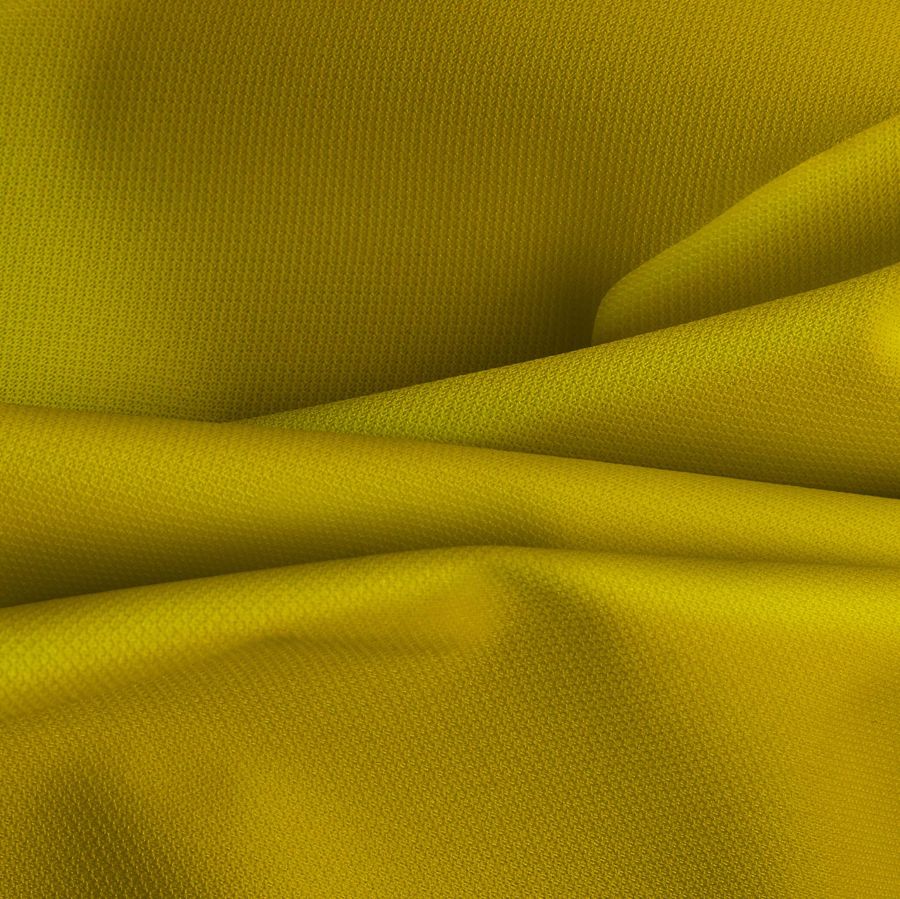 La impermeabilidad es una de las principales características de este tejido base, lo que lo convierte en un tejido ideal para fabricar prendas para días de lluvia o ventosos. Además, su textura es delgada y suave al tacto. En cuanto al color, el amarillo señal se asocia a la señalización y visibilidad, lo que lo hace perfecto para la confección de prendas de seguridad y deportivas.