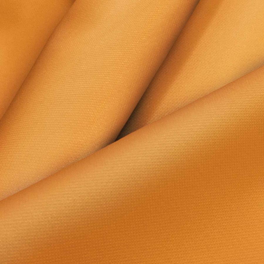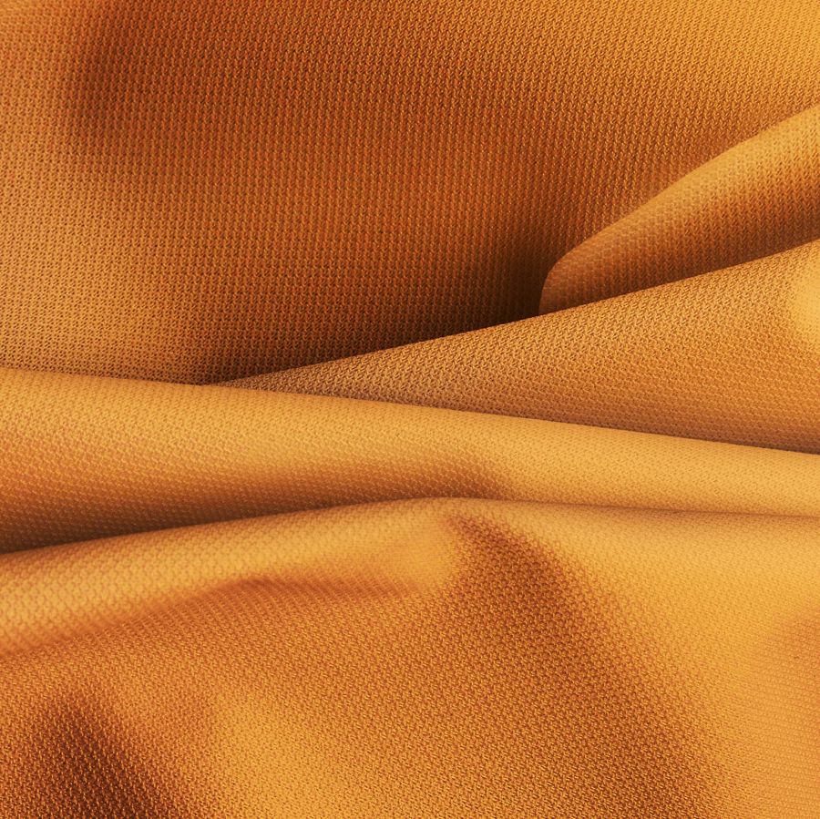 La tela base de esta prenda es la Tela Cortavientos Impermeable - Target, un tejido técnico compuesto al 100% por poliéster con un gramaje de 116 gr/m2. Su ancho de 145 cm permite dar más flexibilidad al momento de confeccionar las prendas. El color liso impreso es Naranja Gamba, un tono cálido y vibrante con un CMYK de 2 61 91 0. Este color secundario combina especialmente bien con el azul oscuro, verde hierba y el marrón chocolate.