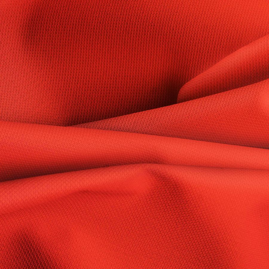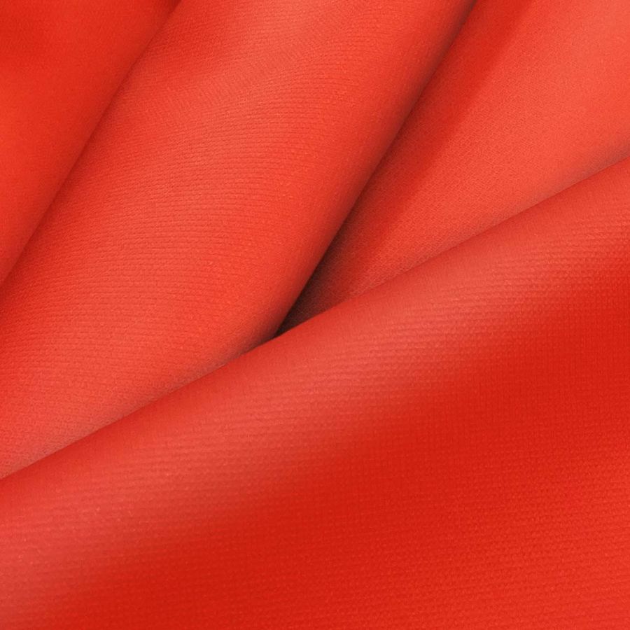 La tela base de este tejido es la Tela Cortavientos Impermeable - Target, compuesta en su totalidad por poliéster con un gramaje de 116 gr/m2 y un ancho de 145cm. Su color liso impreso es un vivo y llamativo rojo ryb, con una tinta magenta y amarilla altas y una tinta cian y negra nulas, lo que determina que sea un rojo saturado, con tonos naranjas y matices rosáceos en función de la luz que reciba.