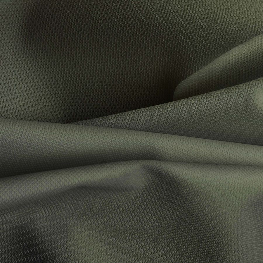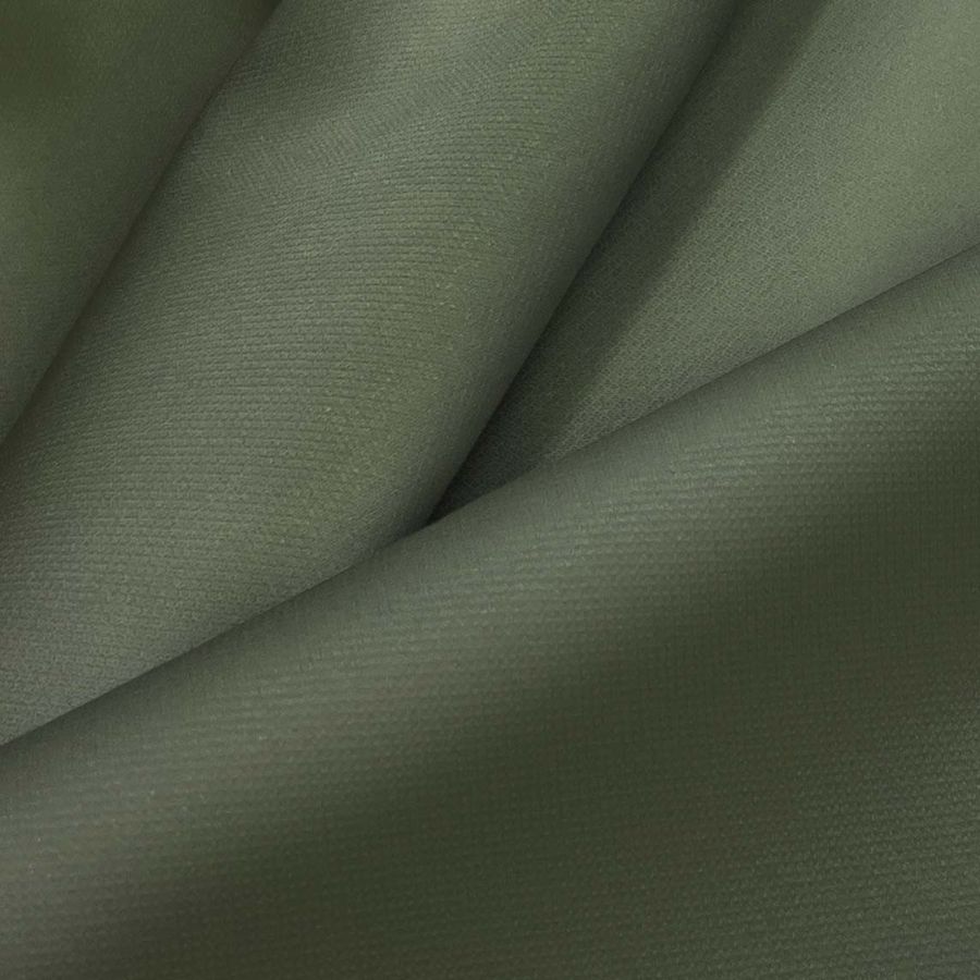 La tela base es la Tela Cortavientos Impermeable - Target, un tejido técnico compuesto por 100% poliéster, con un gramaje de 116 gr/m2 y un ancho de 145cm. El color liso impreso es verde oliva y tiene los siguientes atributos según el CMYK: 66 en tinta cian, 50 en tinta magenta, 73 en tinta amarilla y 55 en tinta negra.