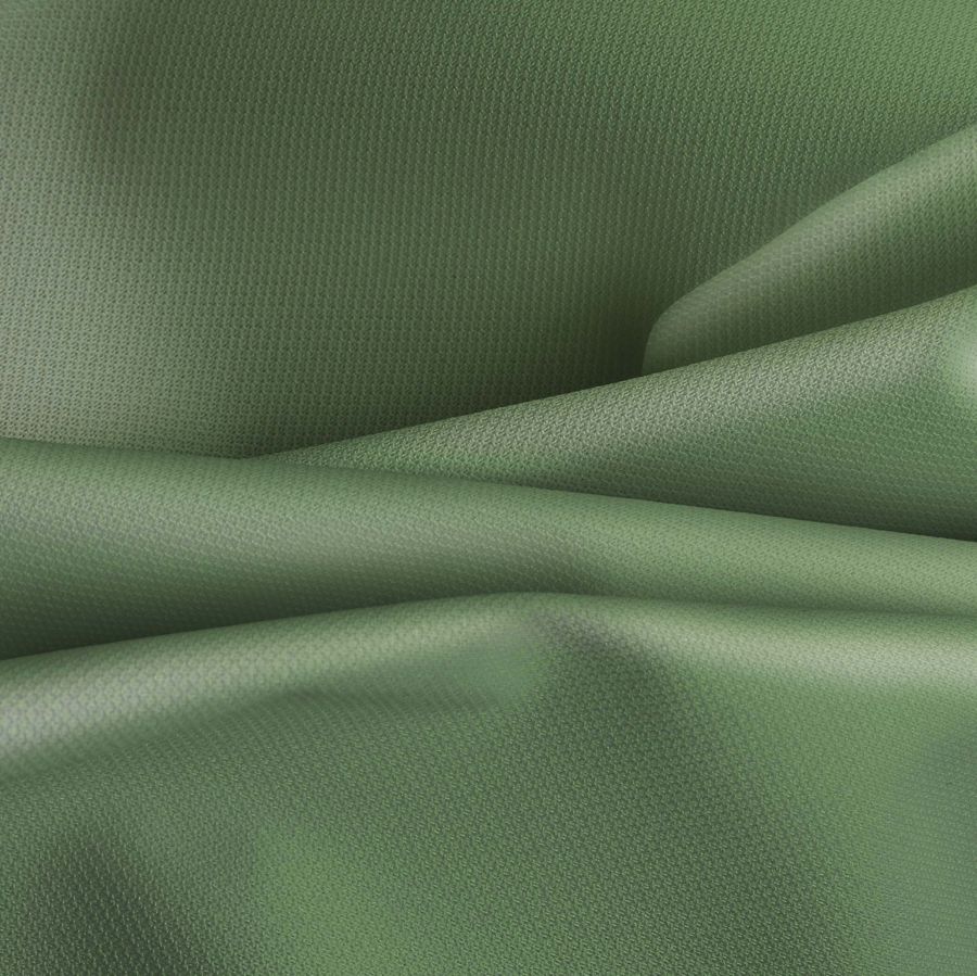 La tela base es la Tela Cortavientos Impermeable - Target, un tejido técnico compuesto por 100% poliéster, con un gramaje de 116 gr/m2 y un ancho de 145cm. El color impreso es un verde pálido con valores de tinta CMYK de 53 17 63 2, lo que le confiere una sensación fresca y natural. El color funciona muy bien combinado con otros colores naturales y orgánicos como el marrón tierra, naranjas y tonos cremosos.