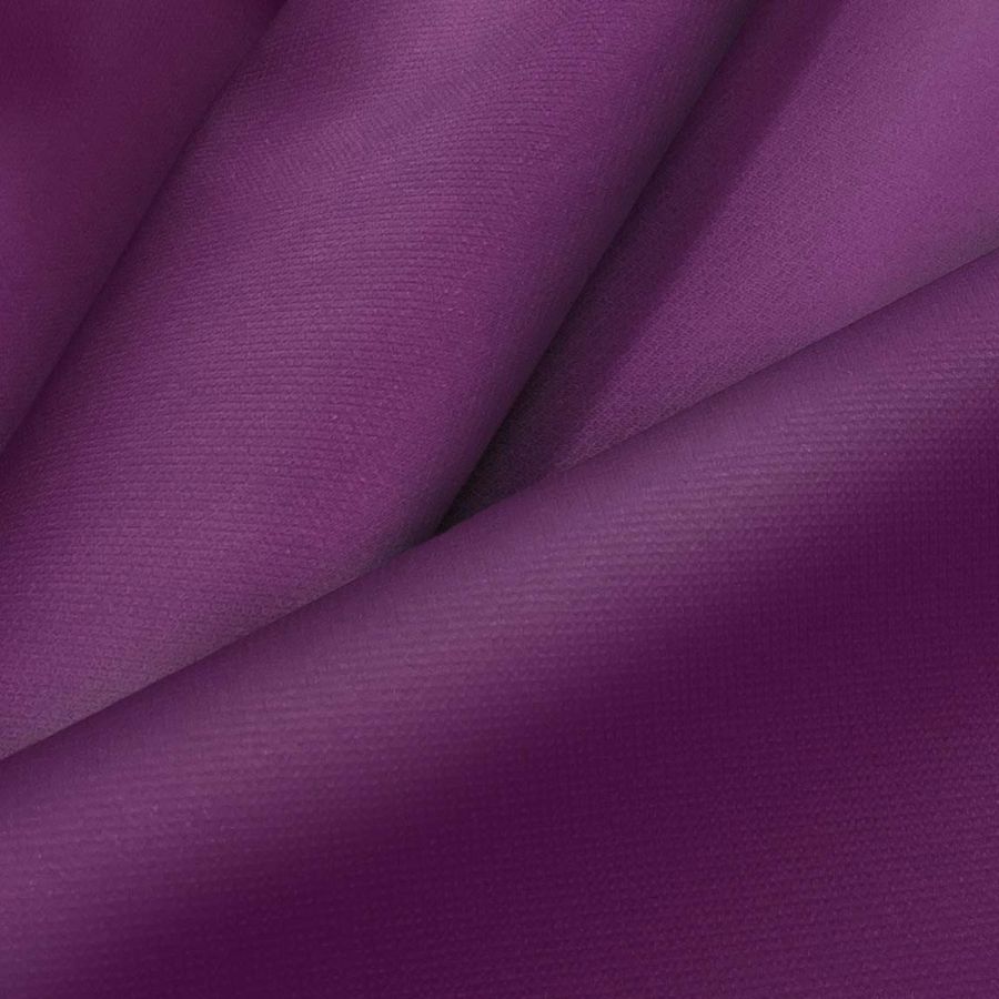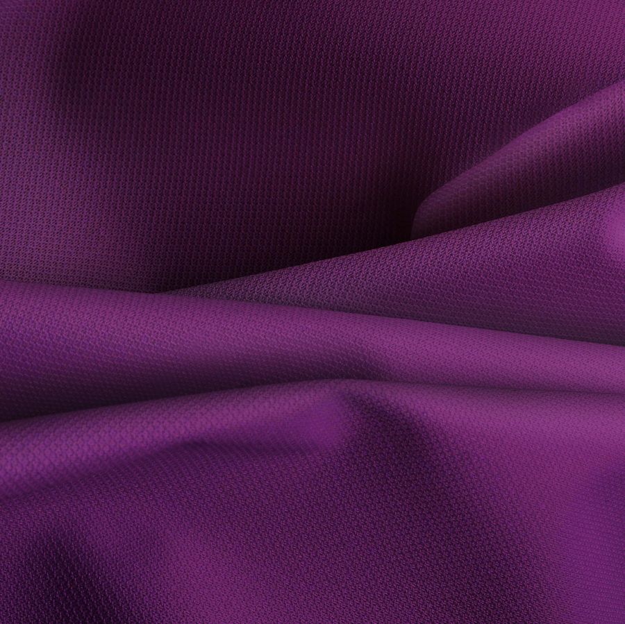 La tela base es la Tela Cortavientos Impermeable - Target, un tejido técnico de 100% poliéster con un gramaje de 116 gr/m2 y un ancho de 145cm. El color liso impreso es de un tono morado intenso, con una tinta cyan del 70%, una tinta magenta del 100%, una tinta yellow del 33% y una tinta black del 40%, lo que lo convierte en un ciruela morada profundo y vibrante. El color secundario se caracteriza por ser elegante pero llamativo, ya que combina perfectamente con tonos oscuros como el negro y grises, pero también con tonalidades rosas.