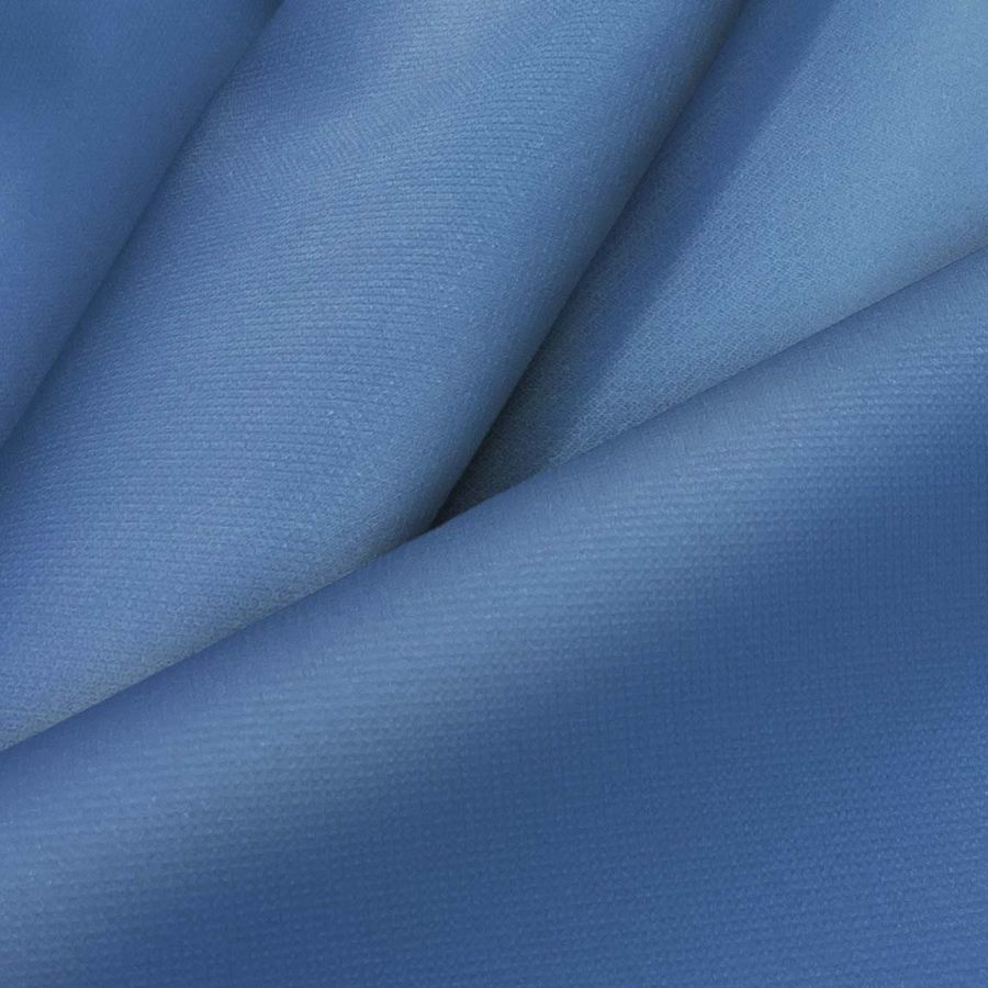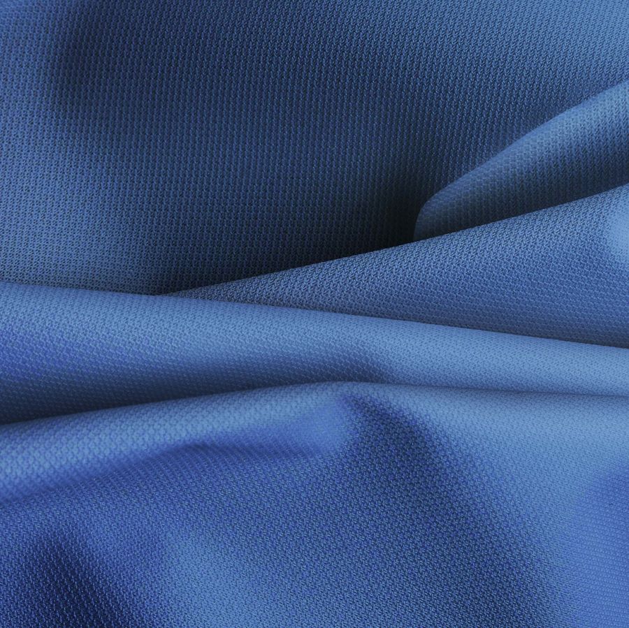 La tela base de la prenda es la Tela Cortavientos Impermeable - Target, un tejido técnico compuesto en un 100% por poliéster con un gramaje de 116 gr/m2 y un ancho de 145 cm. El color liso impreso es un azul cerámica de Delft, cuyo contenido de CMYK es 83 60 23 7. Este tono tiene un efecto simbólico de serenidad y tranquilidad, evocando la sensación de estar frente a un paisaje de mar en calma. Asimismo, técnicamente hablando, su alto porcentaje de cian y magenta le otorgan un componente fresco y profundo que se equilibra con el bajo porcentaje de yellow y black. Este color secundario combina muy bien con tonos tierra, camel y crudos.