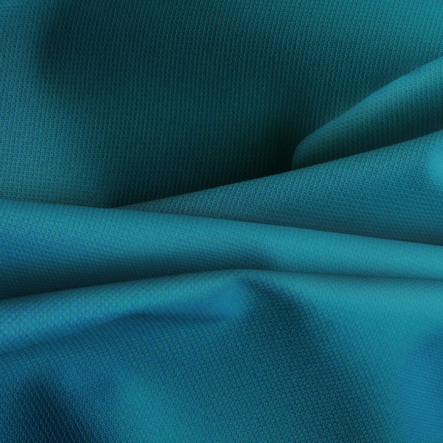 La tela base es la Tela Cortavientos Impermeable - Target, un tejido técnico compuesto al 100% de poliéster con un gramaje de 116 gr/m2 y un ancho de 145 cm. Su color liso impreso es un vibrante azul del golfo, obtenido mediante la tecnología de sublimación con una intensidad de tinta Cyan de 88, Magenta de 40, Yellow de 45 y Black de 32, lo que se traduce en un CMYK: 88 40 45 32. Además, su textura es delgada y cuenta con un acabado impermeable.