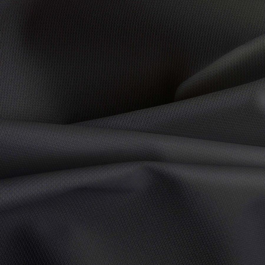 La tela base, Tela Cortavientos Impermeable - Target, es un tejido técnico de poliéster con un gramaje de 116 gr/m2 y un ancho de 145 cm. El color liso impreso es negro y carbón, con el CMYK de 0 0 0 100. El color secundario es un negro profundo que transmite elegancia y sofisticación y combina perfectamente con tonos más claros como el blanco, el gris o el beige.