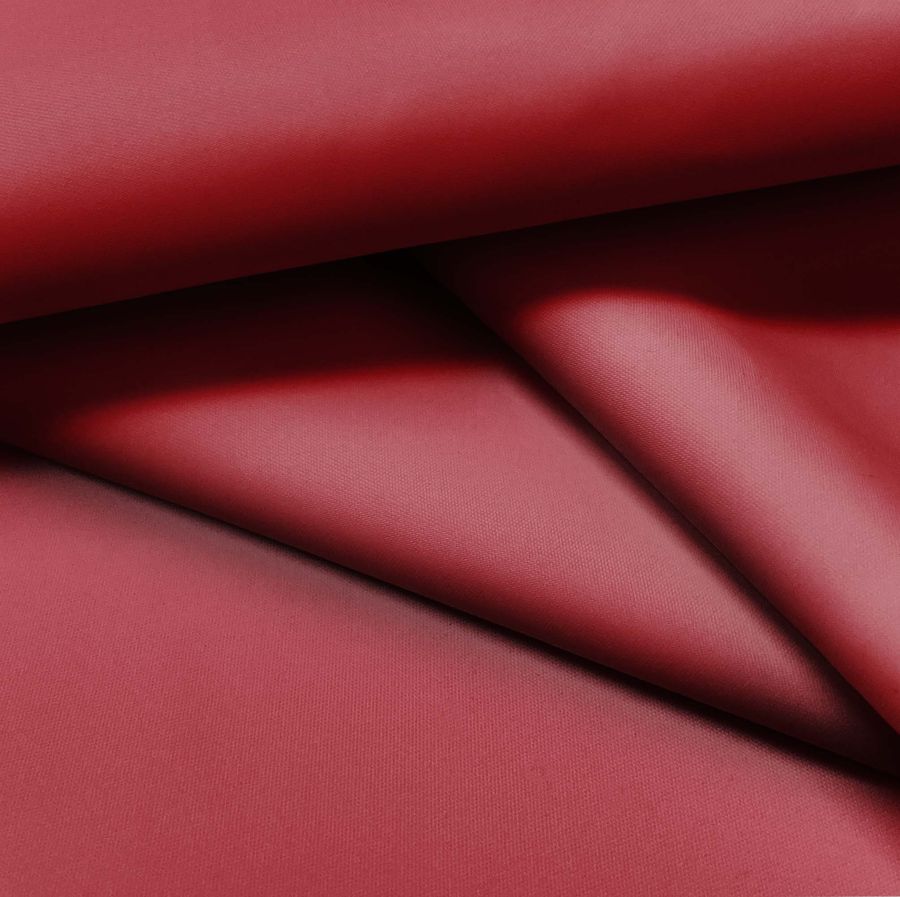 La tela base es la Tela Fina Repelente al Agua - Storm, con una composición de 100% poliéster y un peso de 70 gr/m2. El color liso impreso es un vibrante rojo bermellón, con un CMYK de 25-94-75-21. Este color secundario es un tono cálido y enérgico, que se combina bien con otros colores vibrantes como el amarillo o el naranja. La tela está impresa con el color liso a una sola cara por impresión digital textil, lo que significa que no es un tejido tintado sino impreso por una sola cara.