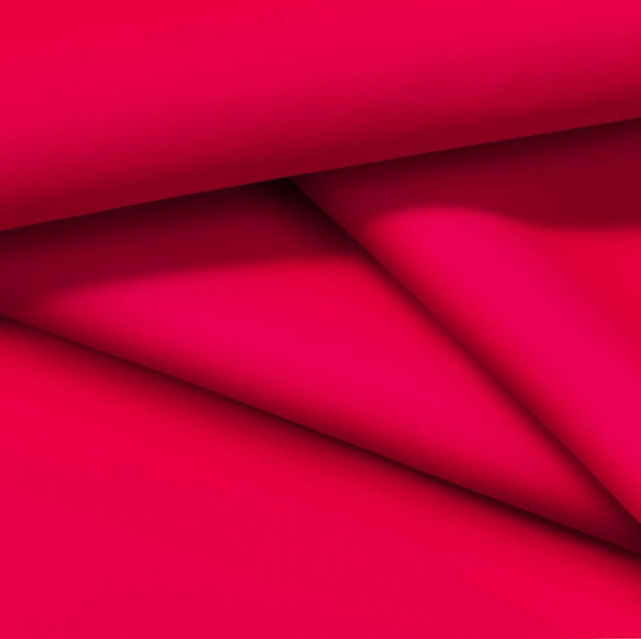 La tela base es la Tela Fina Repelente al Agua - Storm, una tela técnica de 100% poliéster con un gramaje de 70 gr/m2 y ancho de 145 cm. Su color liso impreso es Rojo Carmín con una proporción de Cian 0, Magenta 95, Amarillo 67 y Negro 0 en el CMYK. Este color se destaca por su pasión y vitalidad, a menudo asociado con la fuerza de la naturaleza y la flora. Combina especialmente bien con tonos neutros como el negro, blanco y gris, logrando un efecto dramático y elegante en la moda. La tela está impresa con una sola cara por la tecnología de impresión digital textil.