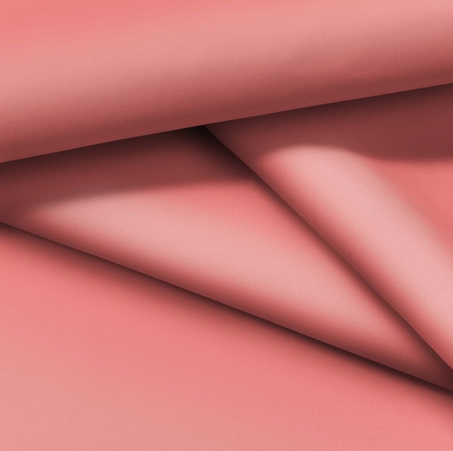 La tela base es la Tela Fina Repelente al Agua - Storm, con composición 100% poliéster, un gramaje de 70 gr/m2 y un ancho de 145 cm. El color liso impreso es un Rojo Pastel de Ciruela, el cual es un tono suave y atractivo que mezcla una base roja con tonalidades moradas. La simbología detrás de este color combina la acción enérgica del rojo con la estabilidad y el equilibrio del morado, creando así un tono que inspira pasión y tranquilidad al mismo tiempo.
