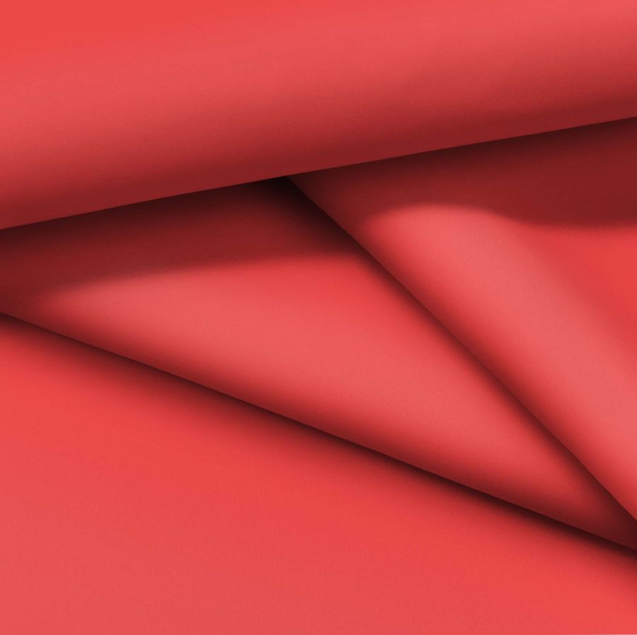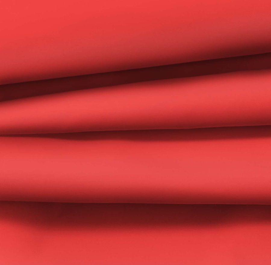 La tela base es la Tela fina repelente al Agua - Storm, un tejido técnico con composición 100% poliéster, gramaje de 70 gr/m2 y un ancho de 145 cm. El color liso impreso es de un rojo medio con un CMYK de 0 84 67 0. Este color secundario transmite energía y vitalidad, así como pasión y fuerza. Además, combina muy bien con tonos neutros como el blanco, el negro y el gris, así como con tonos cálidos como el amarillo, el naranja y el rosa.