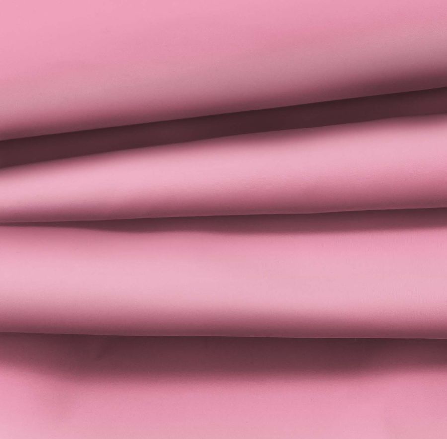 La tela base es la Tela Fina Repelente al Agua - Storm, compuesta por 100% poliéster, con un gramaje de 70 gr/m2 y un ancho de 145 cm. El color liso impreso es rosa baker miller, que se obtiene a partir de cero tinta cyan, 57 tinta magenta y 11 tinta yellow, y un CMYK de 0 57 11 0.