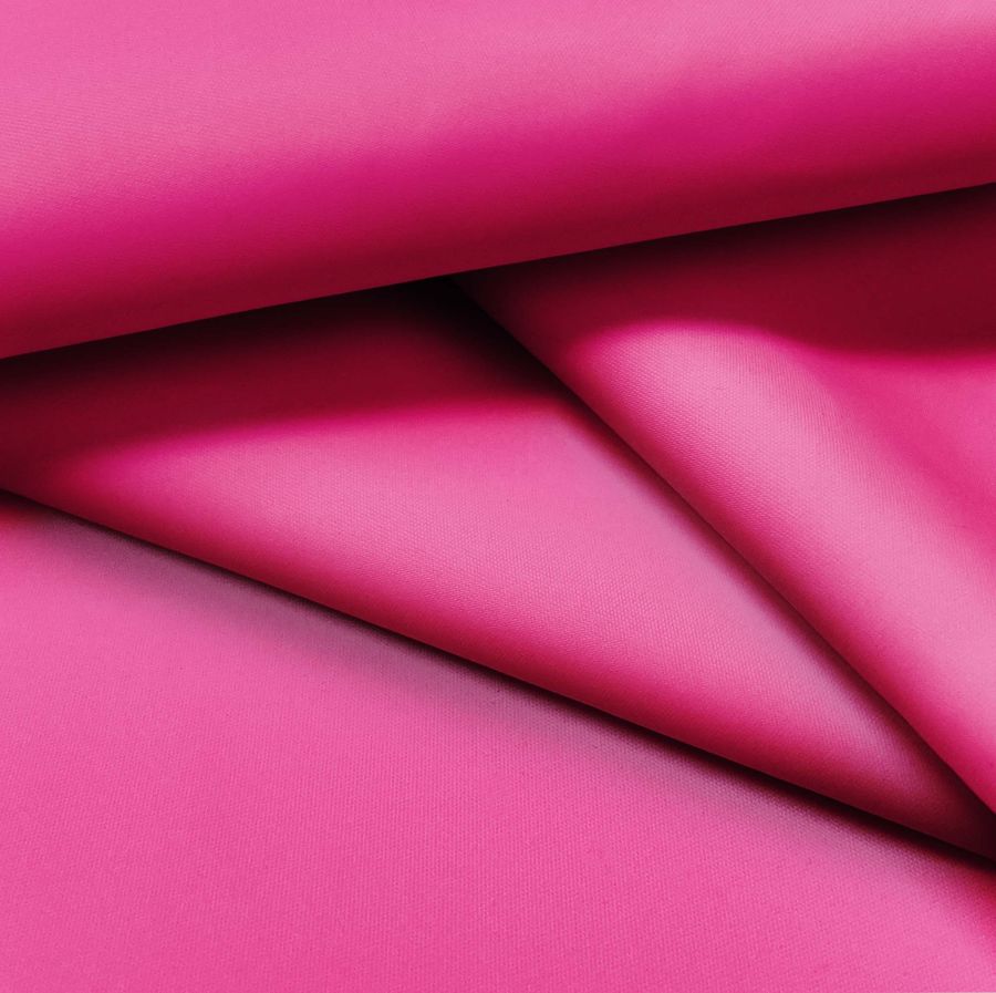 La Tela Fina Repelente al Agua - Storm, de tejido técnico, está compuesta 100% por poliéster, con un gramaje de 70 gr/m2 y un ancho de tela de 145 cm. El color liso impreso es rosa Barbie, con una mezcla CMYK de 0 86 10 0, lo que resulta en un tono vibrante y atractivo. Este color secundario simboliza la feminidad, la dulzura y la sensualidad, es versátil y se combina bien con tonos fríos como blanco, gris, azul y verde.