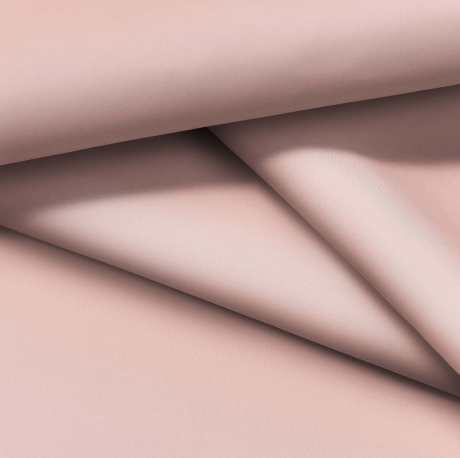 La tela base de esta descripción es la Tela fina repelente al Agua - Storm, un tejido técnico de 100% poliéster que tiene un gramaje de 70 gr/m2 y un ancho de 145 cm. Este tejido presenta una textura delgada y lisa, y su acabado es hidrófugo, lo que lo hace impermeable al agua. El color liso impreso es rosa nácar, con un contenido de tinta de 2 en cyan, 36 en magenta y 27 en yellow, y un 0 en black, lo que da como resultado un tono rosa claro.