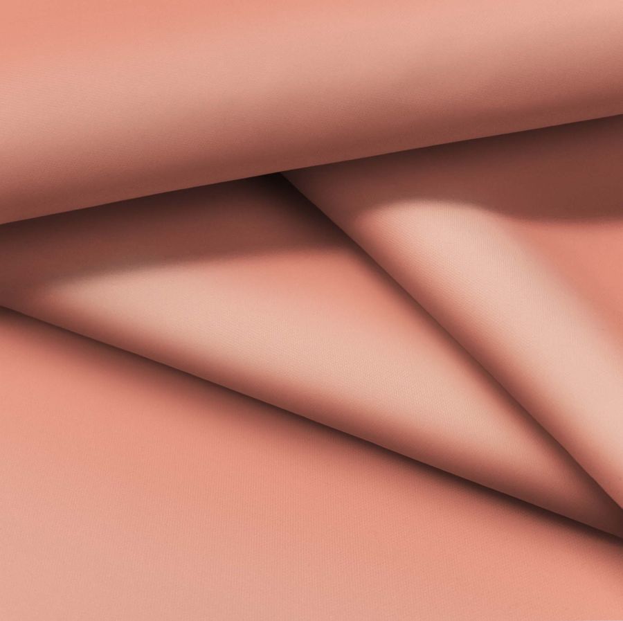 La tela base es la Tela fina repelente al Agua - Storm de 100% poliéster con una densidad de 70 gramos por metro cuadrado y un ancho de 145 cm. El color predominante es un rosa salmón con un CMYK de 0 58 50 0. La combinación de estos colores resulta en un tono suave y elegante, que puede ser utilizado como un color pastel para diferentes aplicaciones de moda y decoración. Este color se fusiona perfectamente con tonos grises o blancos, creando una imagen sofisticada y moderna.
