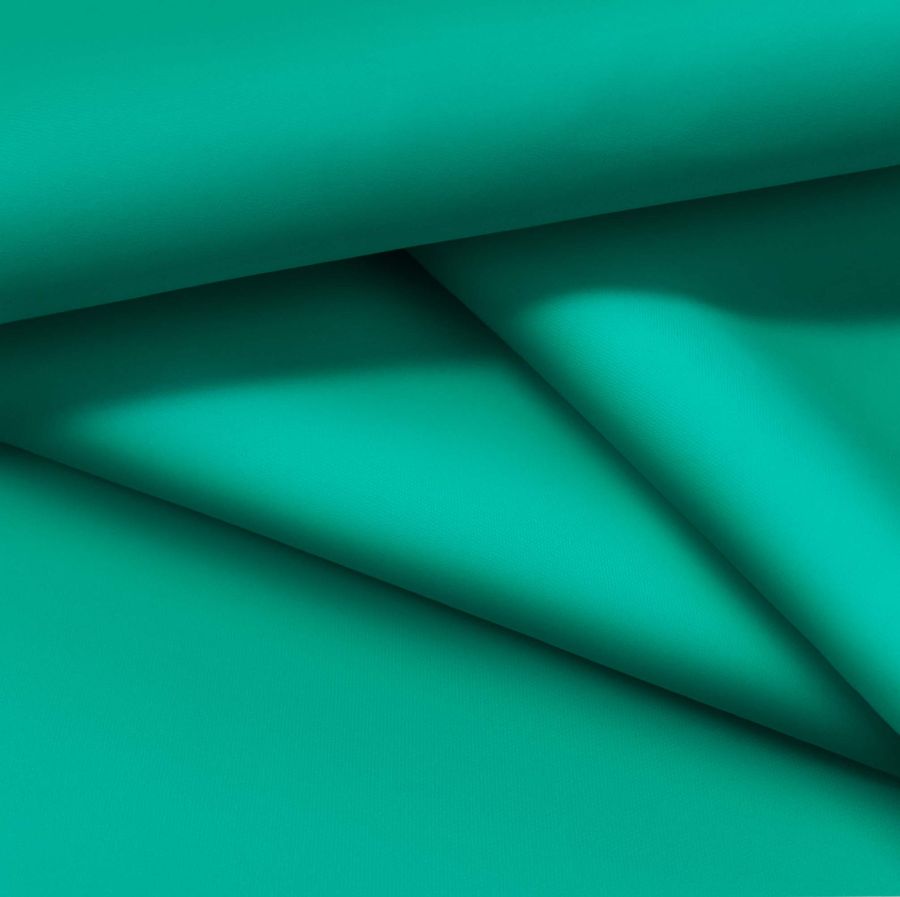 La tela base es la Tela Fina Repelente al Agua - Storm, un tejido técnico compuesto en su totalidad por 100% poliéster y con un gramaje de 70 gr/m2. Su color liso impreso es un verde acuático, cuyo contenido en CMYK es 82 16 62 2, caracterizado por su frescura y energía. Este color secundario combina de manera ideal con otros tonos verdes, azules y amarillos, transmitiendo sensaciones naturales y armónicas.