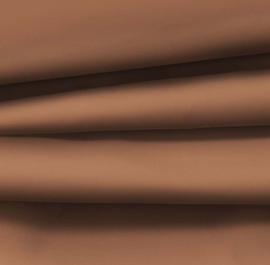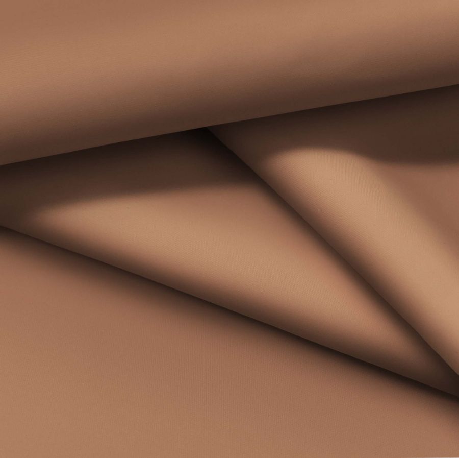La tela base es la Tela Fina Repelente al Agua - Storm de tejido técnico compuesta al 100% de poliéster con un gramaje de 70 gr/m2 y un ancho de 145 cm. En cuanto al color liso impreso, su base es marrón con un matiz de barro arcilloso, con una combinación de tinta cyan de 32, tinta magenta de 56, tinta yellow de 63 y tinta black de 32, lo que da como resultado un CMYK de 32 56 63 32. El color marrón oscuro es un color terroso y cálido que simboliza la estabilidad y la calidez. Se complementa bien con una gama de colores naturales que van desde el beige hasta el verde oliva, así como con colores suaves como el rosa palo, el gris claro y el azul claro.