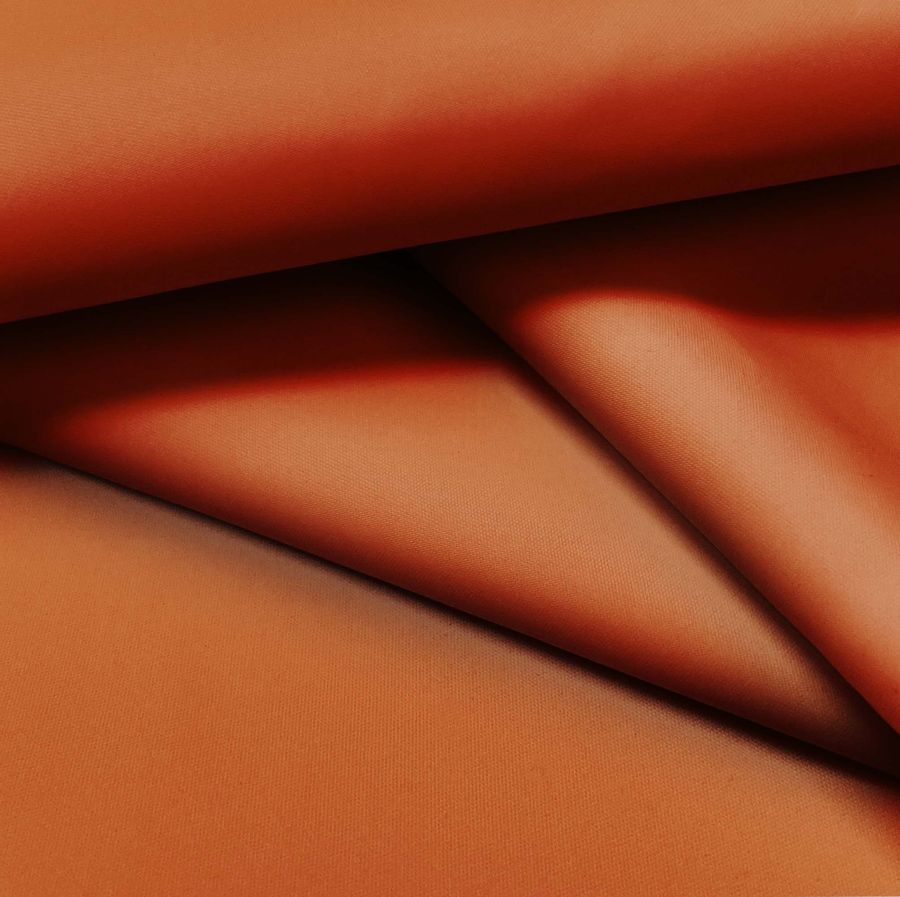 La Tela Fina Repelente al Agua - Storm tiene un color liso impreso en marrón herrumbre, con un CMYK de 20 83 100 11. Este color secundario se caracteriza por ser profundo y cálido, y evoca a la tierra y al óxido. Combina muy bien con otros tonos terrosos, como marrón oscuro y beige, así como con verdes y azules profundos.