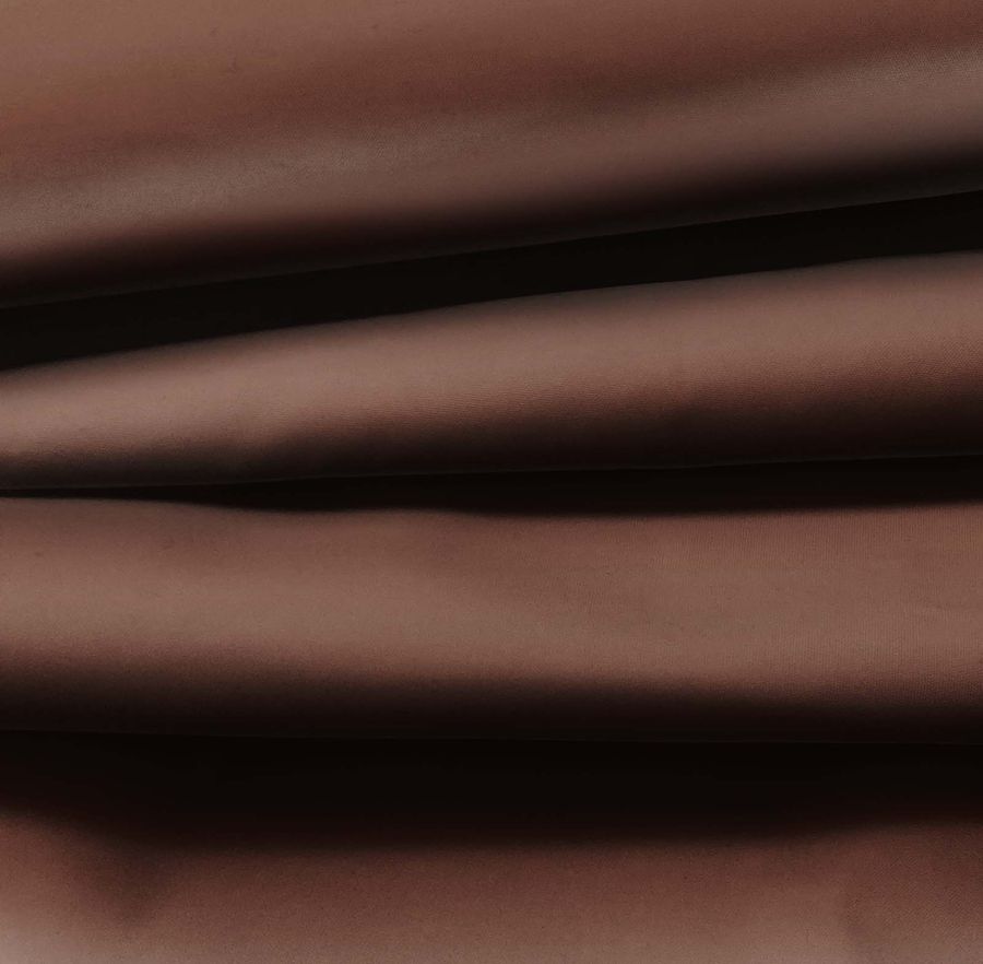 La tela base en cuestión es la Tela fina repelente al Agua - Storm, un tejido técnico 100% poliéster con un gramaje de 70 gr/m2 y un ancho de 145 cm. Es un tejido hidrófugo, de tacto ligero y liso, ideal para la creación de prendas de moda como chaquetas y chubasqueros, así como para la confección de cortinas de ducha. El color liso impreso en este tejido es un Marrón Rico, con una composición de tonos Cyan del 44%, Magenta del 70%, Yellow del 69% y Black del 69%. Este color ricamente cálido se combina perfectamente con tonos naranjas y amarillos, mientras que los tonos plateados y los tonos neutros suaves pueden aportar un contraste elegante. Es importante destacar que la tela está impresa con este color liso a una sola cara por impresión digital textil, que no es un tejido tintado sino impreso por una sola cara.
