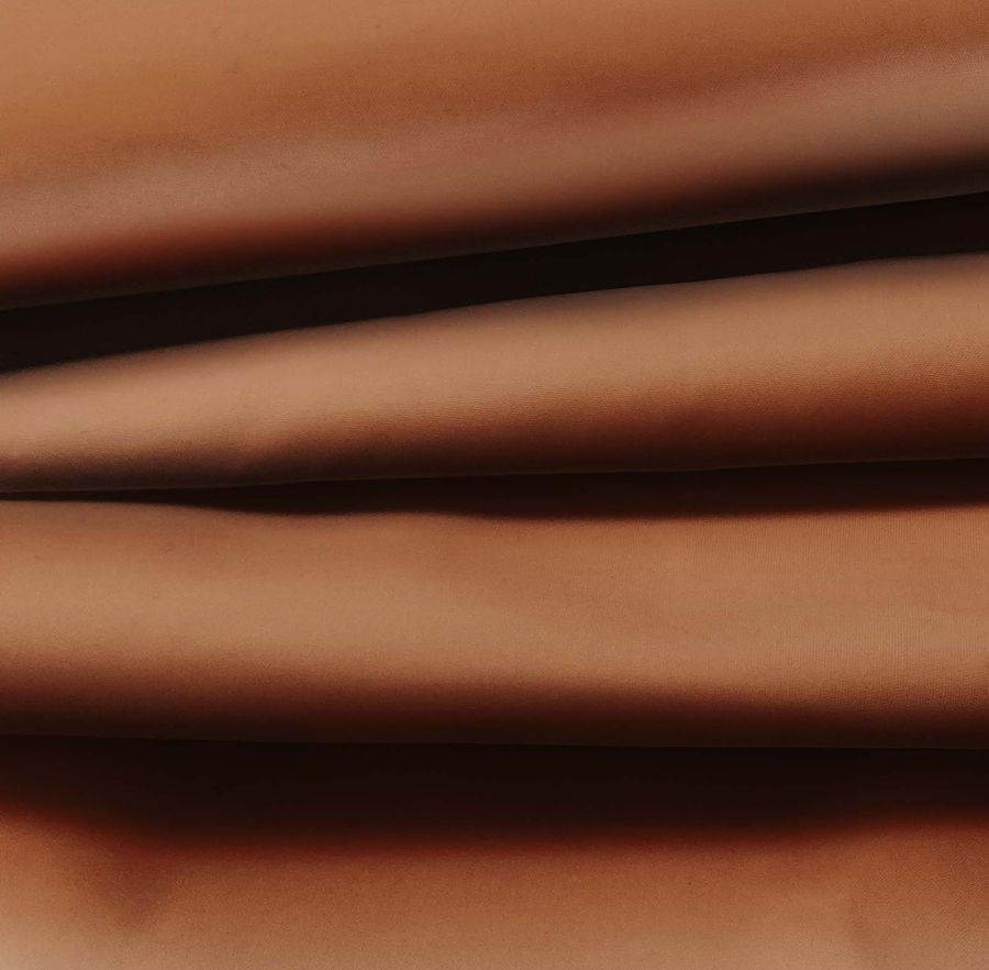 La Tela Fina Repelente al Agua - Storm, de composición 100% poliéster, tiene un gramaje de 70 gr/m2 y un ancho de 145 cm. En cuanto a su color liso impreso, este es marrón momia con un CMYK de 34 71 83 42. Este tono se caracteriza por ser un color cálido y terroso que evoca el pasado.