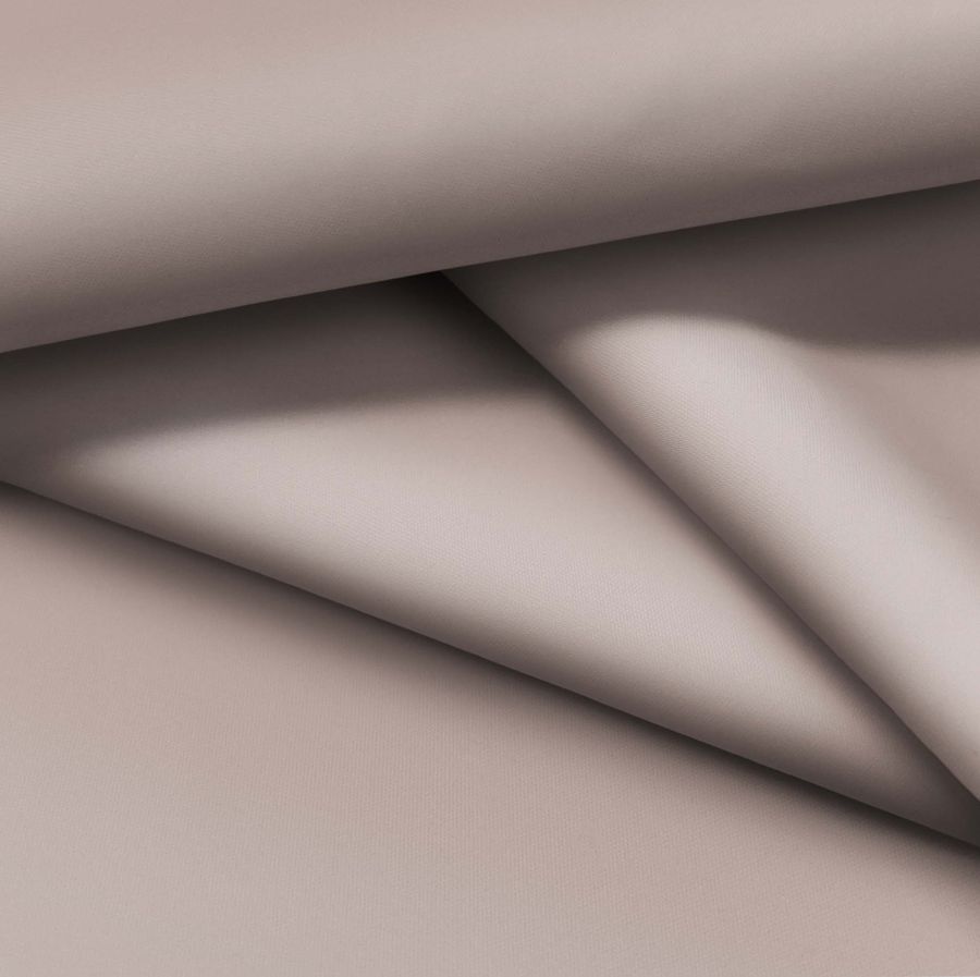 La tela base es una tela fina repelente al agua llamada Storm, con un ancho de 145 cm y un gramaje de 70 gr/m2, compuesta por 100% poliéster. El color liso impreso se compone de marrón y plata pálida, con una tinta cyan de 31, magenta de 36, yellow de 36 y black de 13, formando un CMYK de 31 36 36 13. El color secundario destaca por ser un tono neutro, elegante y sofisticado, que combina a la perfección con colores claros, blancos o grises. La tela está impresa con el color liso a una sola cara mediante impresión digital textil, lo que garantiza una alta calidad en la impresión.
