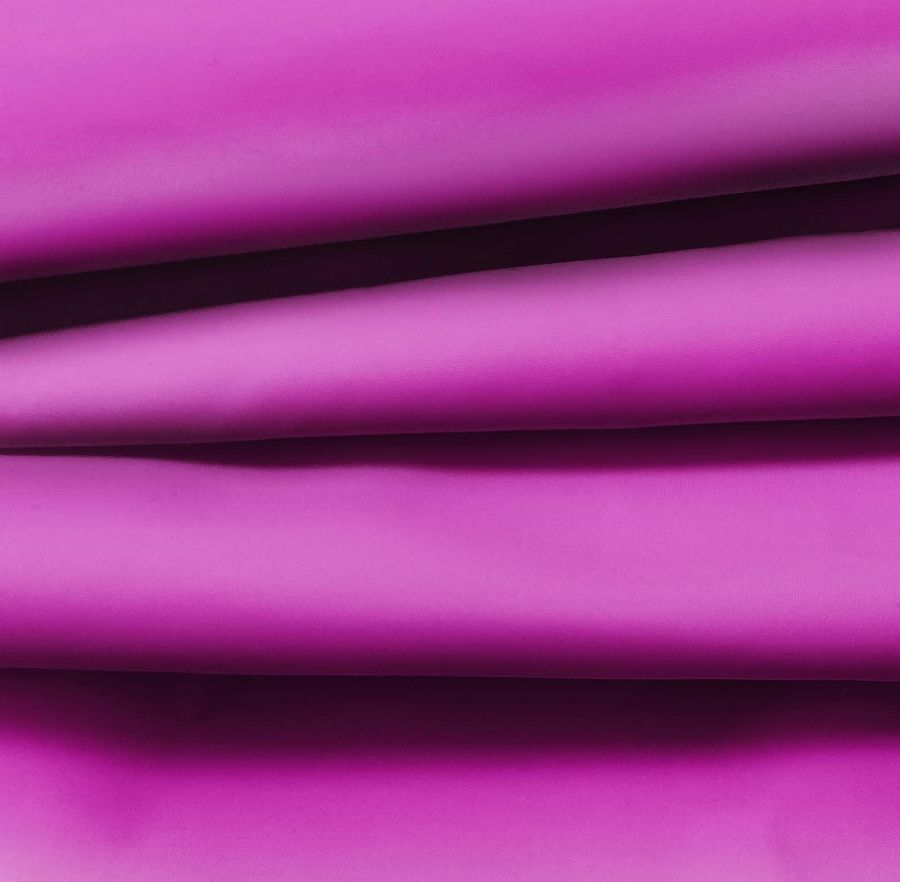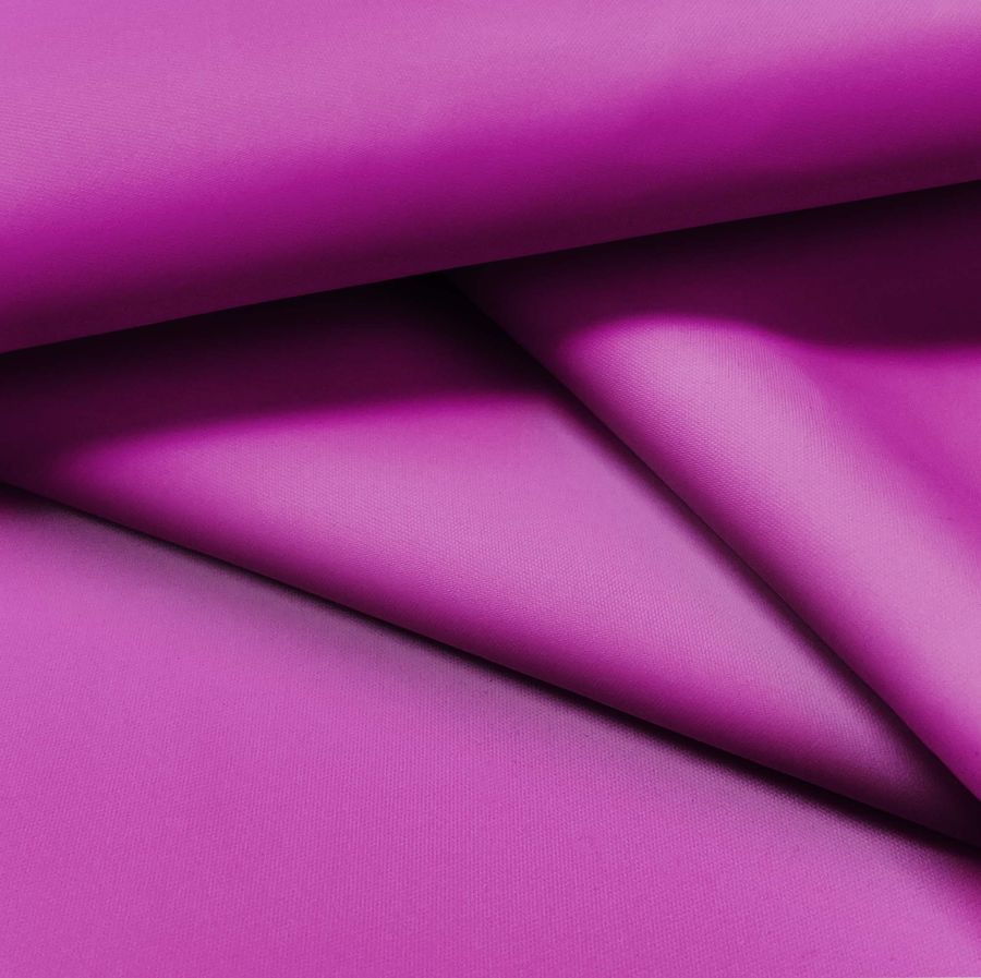 La tela base es la Tela fina repelente al Agua - Storm, un tejido técnico de composición 100% poliéster con un gramaje de 70 gr/m2 y un ancho de 145 cm. El color liso impreso es de un tono bizantino morado, con un CMYK de 39 85 0 0. Este color es un tono profundo y elegante que transmite la sensación de lujo y sofisticación. Combina particularmente bien con tonos neutros y oscuros, como el gris carbón o el negro, creando contrastes interesantes y atrevidos.