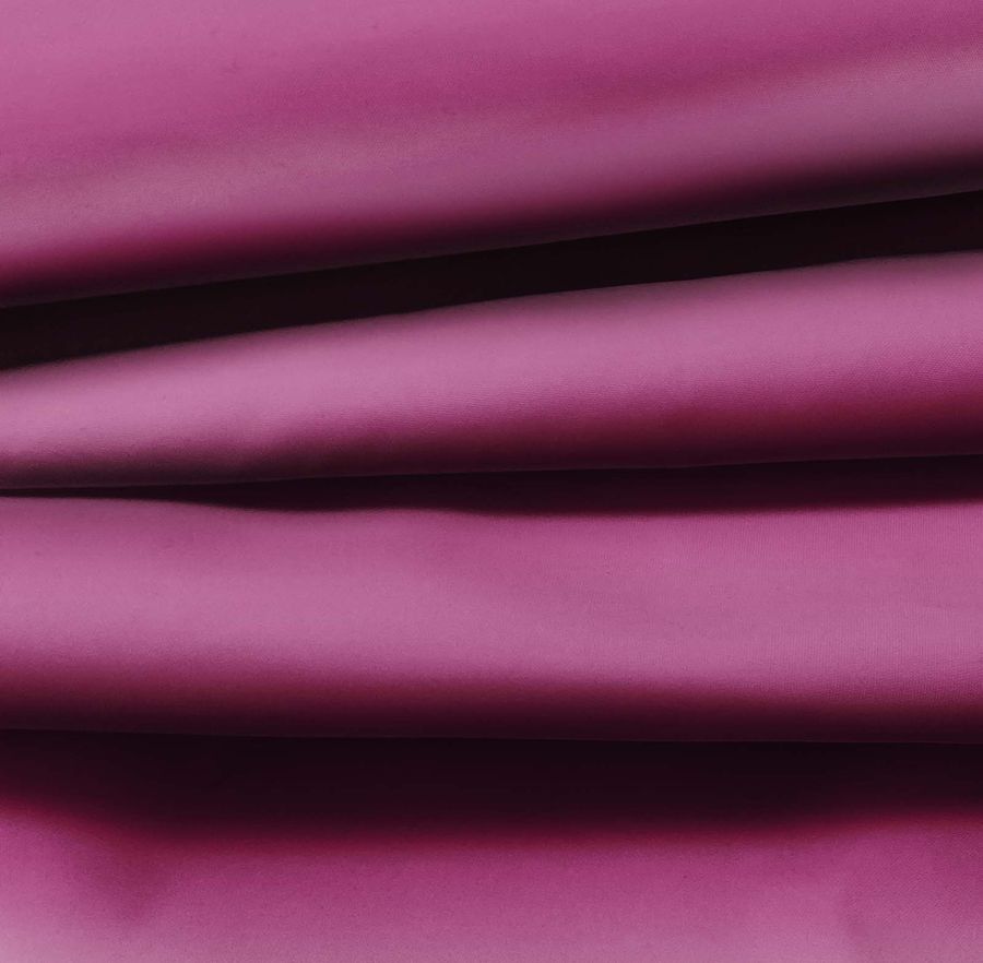 La tela base es la Tela fina repelente al Agua - Storm, tejido técnico compuesto al 100% de poliéster con un gramaje de 70 gr/m2 y un ancho de 145 cm. Impreso mediante sublimación (poliéster), el color liso tiene una tonalidad Morado Boysemberry (CMYK:44 88 29 21), que se caracteriza por ser un morado inspirado en las moras, con un toque oscuro y elegante. El color secundario está muy de moda en el sector de la moda y la decoración, y combina muy bien con colores claros, oscuros y neutros, como rosa pálido, gris y negro.