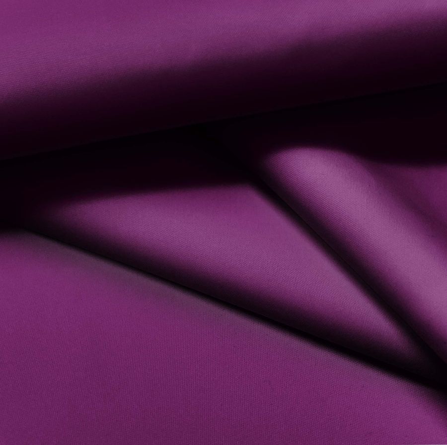 La tela base es la Tela fina repelente al Agua - Storm, que está compuesta al 100% de poliéster, con un gramaje de 70 gr/m2 y un ancho de 145 cm. Su color liso impreso es Morado Púrpura de Tiro, con un CMYK de 70 100 33 47. Este color es un tono oscuro y profundo que evoca la energía creativa y artística, combinando la pasión y la tranquilidad. Se combina particularmente bien con colores neutros como el gris y el beige, y también con colores más brillantes como el rojo y el rosa.