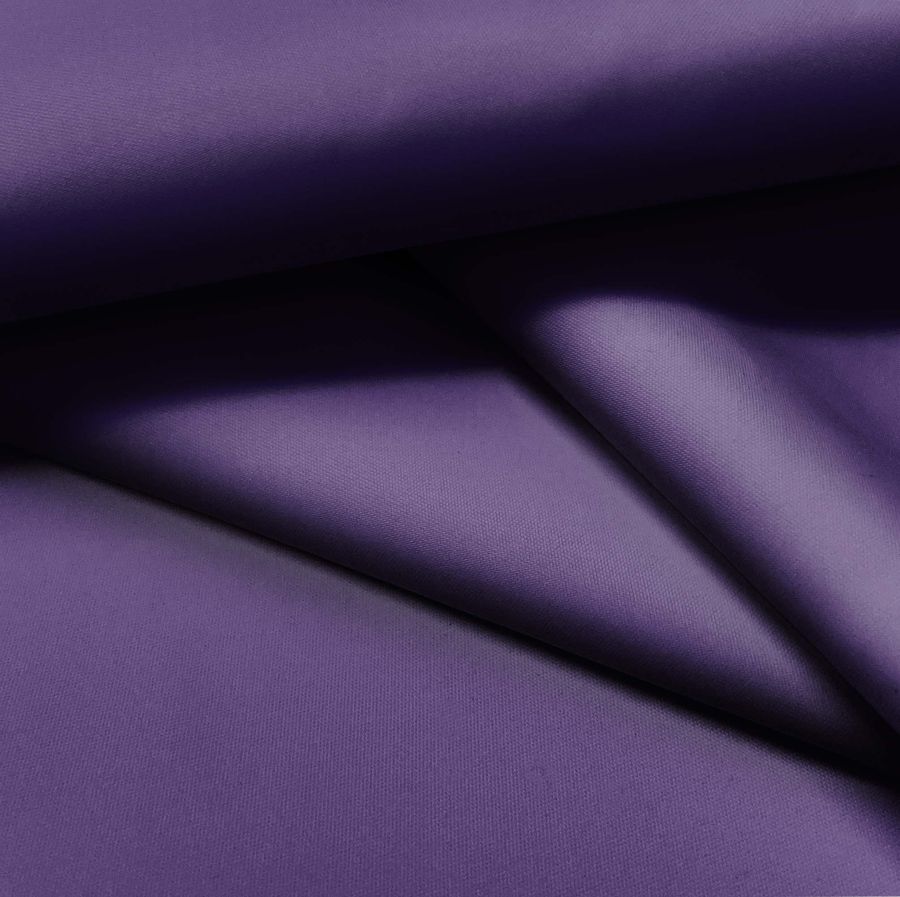 La tela base es la Tela fina repelente al Agua - Storm, de tejido técnico y composición 100% poliéster, con un gramaje de 70 gr/m2 y un ancho de tela de 145 cm. La tela es de color liso impreso en tonalidades de Morado y Violeta Ultramar, con un contenido de CMYK de 88 94 29 24. El color secundario utilizado es un tono profundo y enigmático que combina bien con una amplia variedad de tonos, como el blanco, negro, grises y beige.