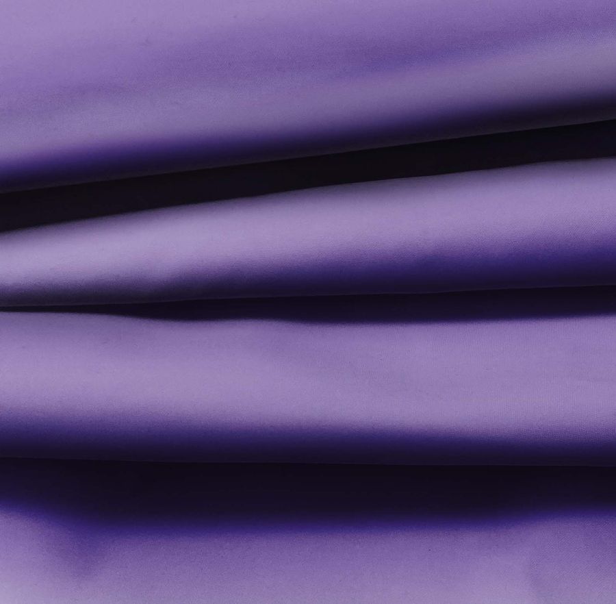 La tela base de este tejido es la Tela fina repelente al Agua - Storm, un tejido técnico de poliéster con un gramaje de 70 gr/m2, diseñado para su uso en moda, textil del hogar y ropa deportiva. El ancho de la tela es de 145cm, y su nombre ya nos indica su capacidad de repeler el agua, convirtiéndola en una opción ideal para prendas de invierno o incluso cortinas de ducha. El color liso impreso es un vibrante morado-violeta cristal, que se consigue gracias a una combinación de tintas CMYK. Esta tonalidad es una mezcla equilibrada de cian (75) y magenta (77), con una pequeña dosis de amarillo (14) y negro (2), lo que aporta una vibrante profundidad y luminosidad. Este color combina especialmente bien con tonos neutros como el blanco o el gris, aunque también puede ser una buena opción para combinaciones más atrevidas con tonos más vivos.