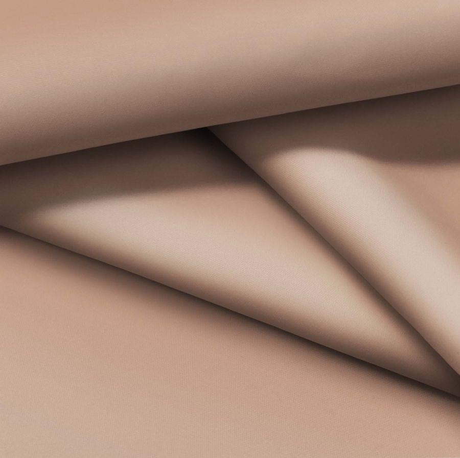 La tela base es el tejido técnico Storm, delgado y con una textura lisa y suave al tacto. Su composición es 100% poliéster y cuenta con una impermeabilidad y acabado hidrófugo. El color liso impreso es un hermoso tono naranja centavo de cobre que se obtiene a través de la tecnología de impresión por sublimación en un solo lado de la tela.