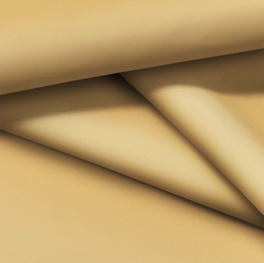 La tela base de nuestra pieza es la Tela fina repelente al Agua – Storm. Se compone al 100% de poliéster y tiene un gramaje de 70 gr/m2, con una anchura de 145 cm. Impresa a una sola cara mediante la tecnología de sublimación, la tela brilla en un color naranja-dorado brillante. Su paleta de colores se compone de cyan 10, magenta 34, amarillo 65 y negro 1, con un perfil de color CMYK de 10 34 65 1. Este vibrante color secundario combina perfectamente con una paleta de colores cálidos, como rojos y marrones, o incluso una paleta de colores fríos como el azul y el verde, logrando una mayor intensidad.