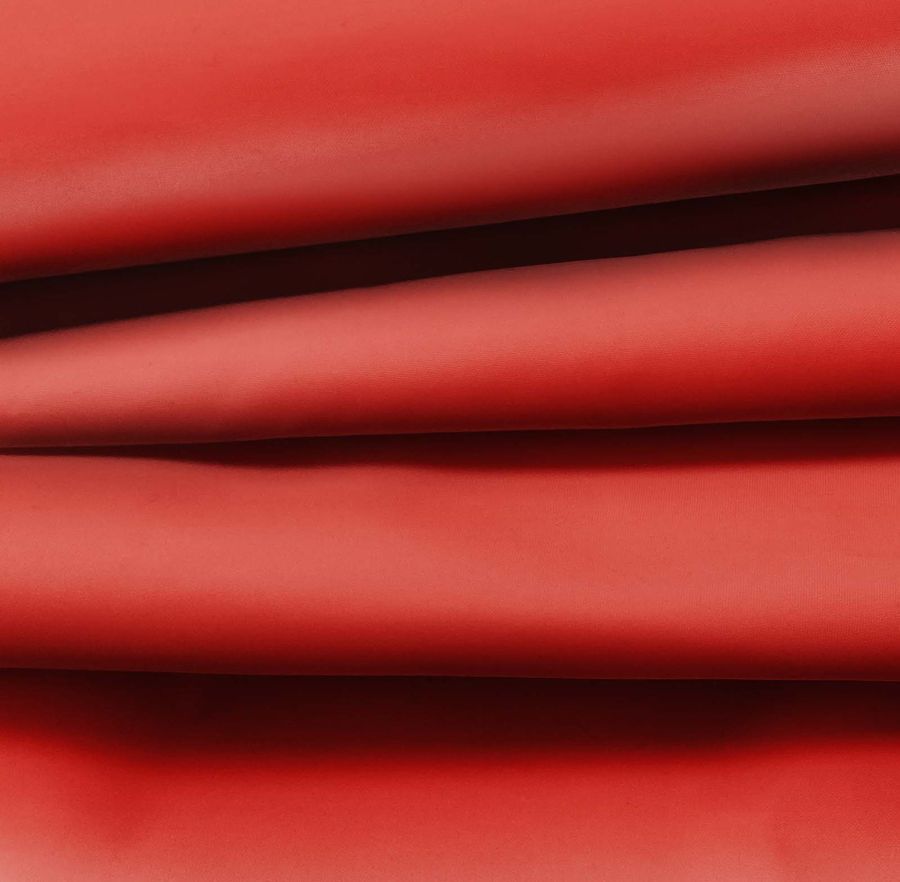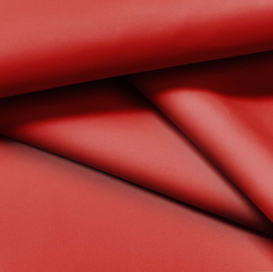 La tela base es la Tela Fina Repelente al Agua - Storm, un tejido técnico compuesto al 100% de poliéster con un gramaje de 70 gr/m2. El color liso impreso es Naranja Lava, con un CMYK de 16 94 92 6, lo que le da un carácter vibrante y emotivo. Este color, al ser una tonalidad cálida, produce una asociación inmediata a la energía y al calor. Se combina muy bien con colores neutros como blancos, grises y negros, así como con tonos pastel de verde y azul.