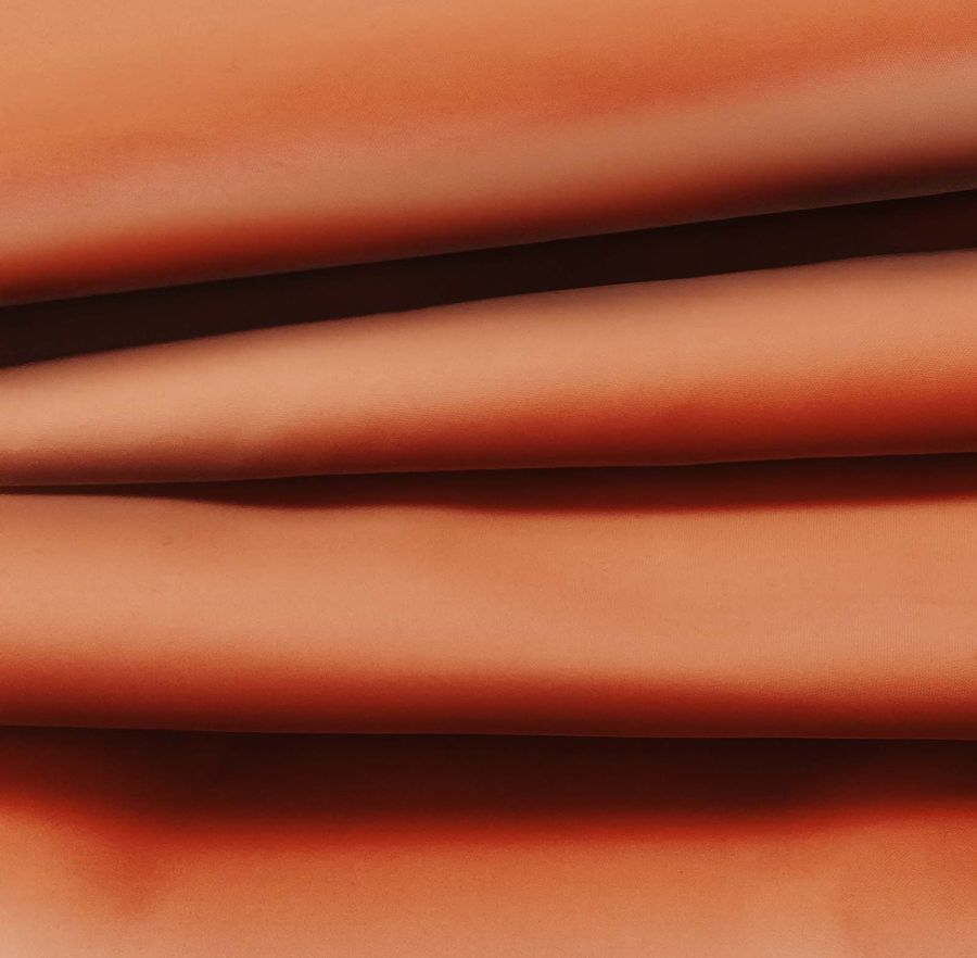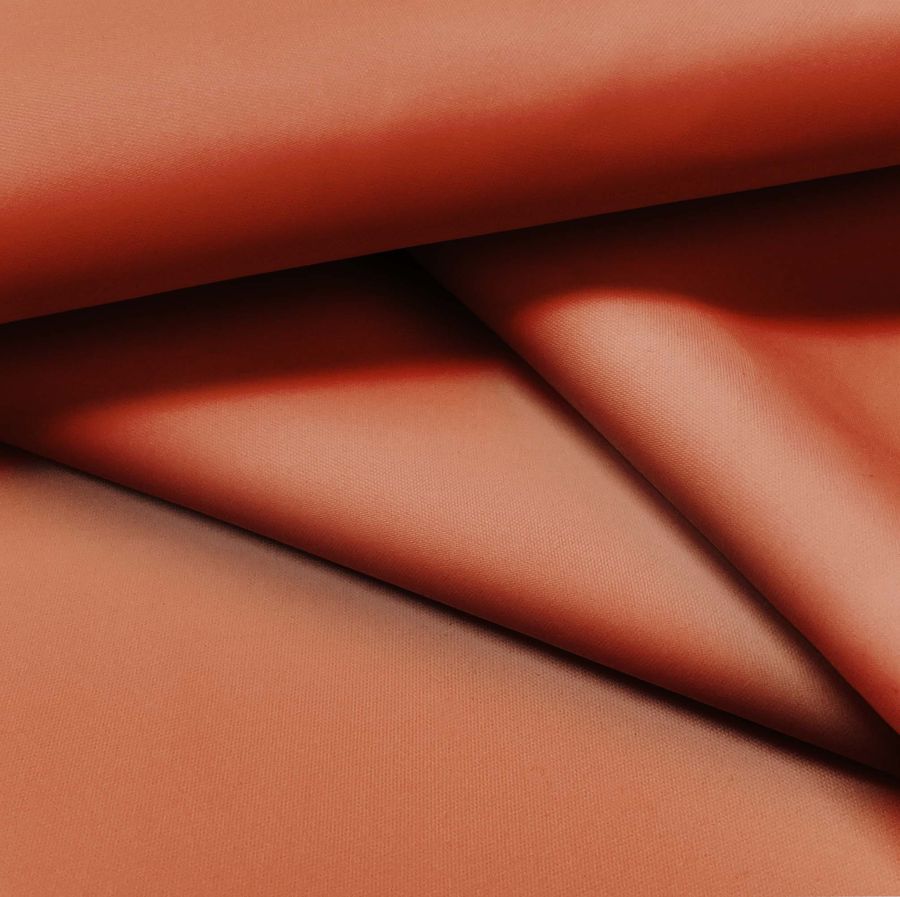 La tela base, denominada Tela Fina Repelente al Agua - Storm, es un tejido técnico con un gramaje de 70 gr/m2 y un ancho de 145 cm. Está compuesto por 100% poliéster y es impermeable, lo que le proporciona una excelente capacidad para repeler líquidos. El color secundario impreso en esta tela es el Naranja Golden Gate, que se caracteriza por ser un tono intenso y vibrante. La combinación CMYK utilizada para su impresión es 19 75 84 8, lo que proporciona una saturación adecuada y contraste de tonalidades, con una predominancia de los tonos magenta y amarillo.
