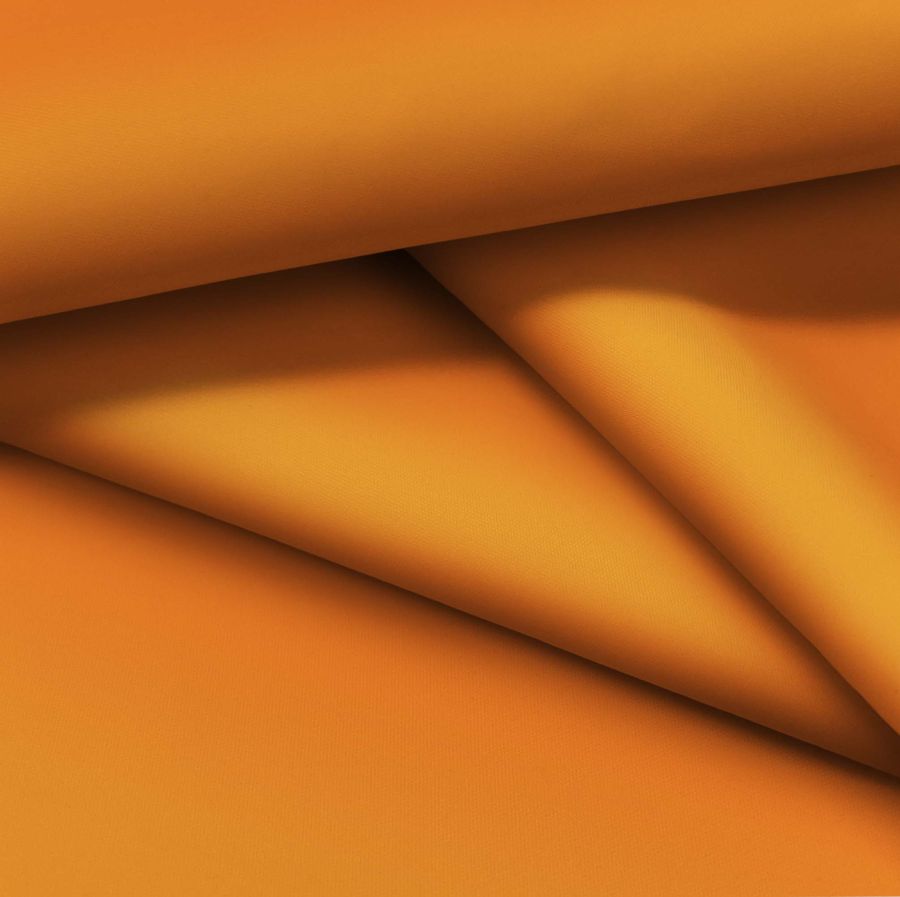 La tela Storm es un tejido técnico repelente al agua de 100% poliéster de 70 gr/m2 con un color liso impreso en naranja butano, cuyo CMYK es 2 69 93 0. Este color, representativo de la vitalidad, la creatividad y la energía, combina perfectamente con tonos neutros como el gris o el blanco, así como con azules y verdes.