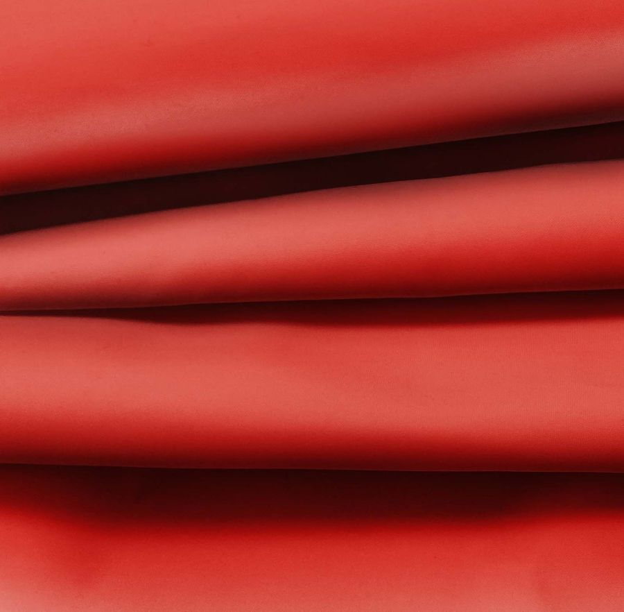 La tela base es la Tela Fina Repelente al Agua – Storm, un tejido técnico compuesto al 100% de poliéster con un gramaje de 70 gr/m2 y un ancho de 145 cm. El color liso impreso es de un hermoso naranja sanguina, que se consigue combinando tinta cyan en un 13%, tinta magenta en un 95%, tinta yellow en un 93% y tinta black en un 3% con un CMYK de 13 95 93 3. Este tono profundamente cálido y estimulante se asemeja a una mezcla de colores rojos y anaranjados, y combina particularmente bien con tonos tierra, marrones y verdes.