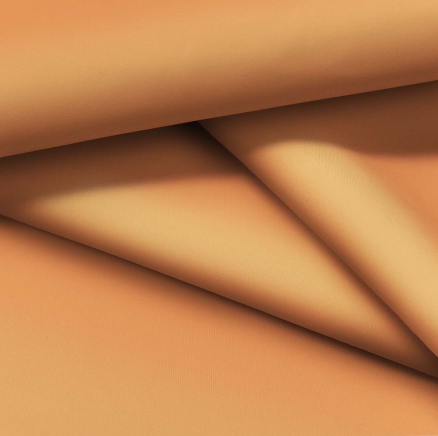 La Tela Fina Repelente al Agua - Storm es un tejido técnico compuesto al 100% de poliéster, con un gramaje de 70 gr/m2 y un ancho de tela de 145 cm. El color liso impreso es un naranja llamativo, conocido como Outrangeus Orange, que se logra con una tinta cian de 1, una tinta magenta de 57, una tinta amarilla de 71 y una tinta negra de 0, su CMYK es de 1 57 71 0. Este color secundario evoca sentimientos de energía y entusiasmo, y funciona bien con tonalidades contrastantes como el negro, azul profundo y algunos tonos de violeta.