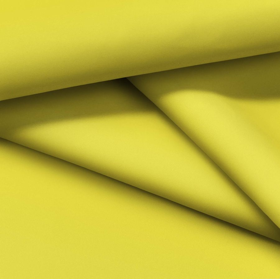 La tela base es la Tela Fina Repelente al Agua - Storm, un tejido técnico de 100% poliéster con un gramaje de 70 gr/m2 y un ancho de 145 cm. Su color liso es un amarillo azufre cuyo CMYK es de 10 6 84 0. Este color es símbolo de energía, felicidad y alegría, y se asocia con la luz solar y el verano. Este color secundario combina especialmente bien con tonos azules, verdes y grises, creando contrastes vibrantes y equilibrados. Es importante destacar que este tejido está impreso con el color liso a una sola cara por impresión digital textil, lo que significa que el color se adhiere únicamente en una de las caras y no penetra en todo el tejido.