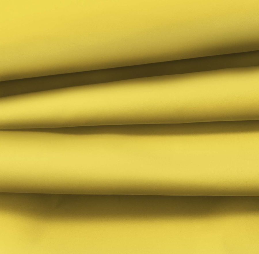 La tela base, Tela fina repelente al Agua - Storm, es un tejido técnico de poliéster con un gramaje de 70 gr/m2 y un ancho de 145 cm. Su color liso impreso en amarillo alarma es resultado de la tecnología de sublimación, con un CMYK de 0 16 77 0. Este color amarillo alarma es una tonalidad de amarillo con un matiz vibrante y llamativo, que combina bien con tonos azules y grises. El tejido está impreso a una sola cara por impresión digital textil.