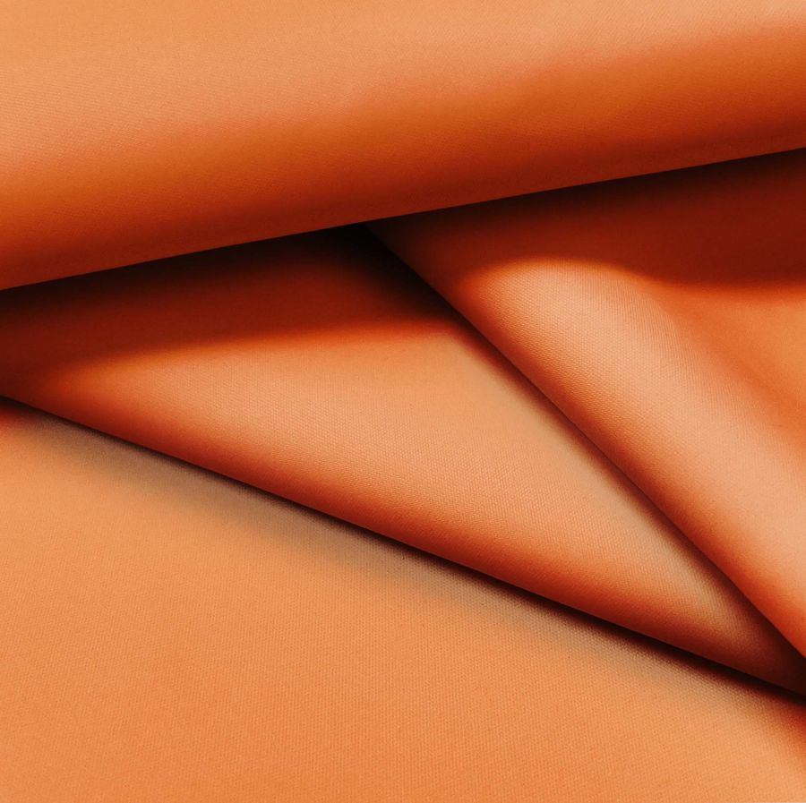La tela base es la Tela fina repelente al Agua - Storm, un tejido técnico compuesto de 100% poliéster, con un gramaje de 70 gr/m2 y un ancho de tela de 145 cm. El color liso impreso es amarillo indio con un CMYK de 0 65 82 0, lo que lo hace un color vibrante y cálido. Este color secundario es una mezcla de rojo y amarillo anaranjado, lo que le da una sensación de energía y vitalidad. Combina bien con colores neutros como gris y blanco, así como con colores complementarios como turquesa y morado.