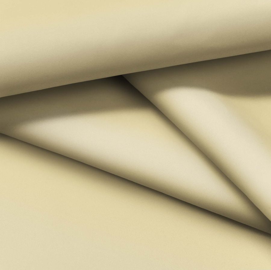La tela fina repelente al agua Storm es un tejido técnico de poliéster, con un gramaje de 70 gr/m2 y un ancho de 145 cm. Su color liso impreso es amarillo-beige, con un contenido de tinta cyan de 9, magenta de 14, amarillo de 47 y negro de 0, en una escala CMYK de 9 14 47 0. Este tono cálido y suave evoca la luminosidad de un día soleado en la playa. Se combina especialmente bien con tonos naturales y neutros, como blanco, gris claro y marrón claro.