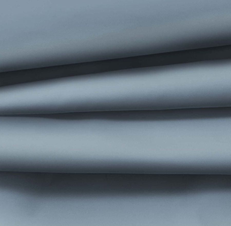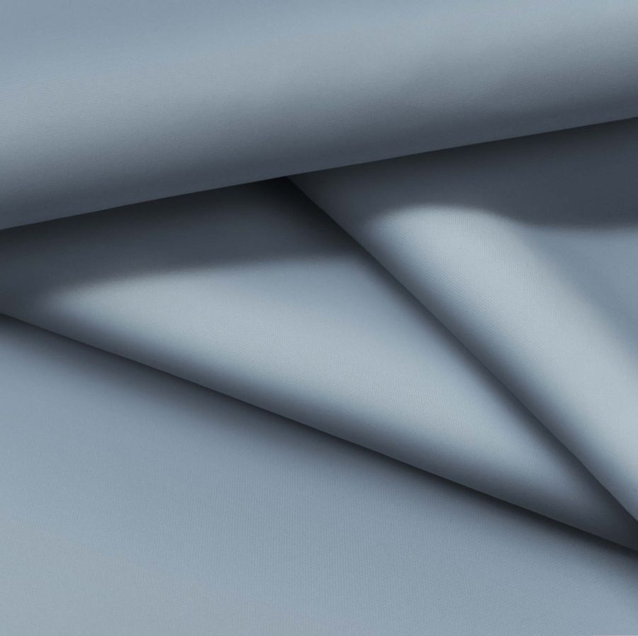 La tela base es la Tela Fina Repelente al Agua - Storm, un tejido técnico compuesto completamente de poliéster y con un gramaje de 70 gr/m2 y una anchura de 145 cm. El color liso impreso es un elegante gris pizarra luz, con un CMYK de 57 38 28 11. Este color secundario se caracteriza por su sutileza y combinabilidad con otros tonos similares, como el blanco, el negro y el gris oscuro. El tejido se imprime a una sola cara mediante impresión digital textil.
