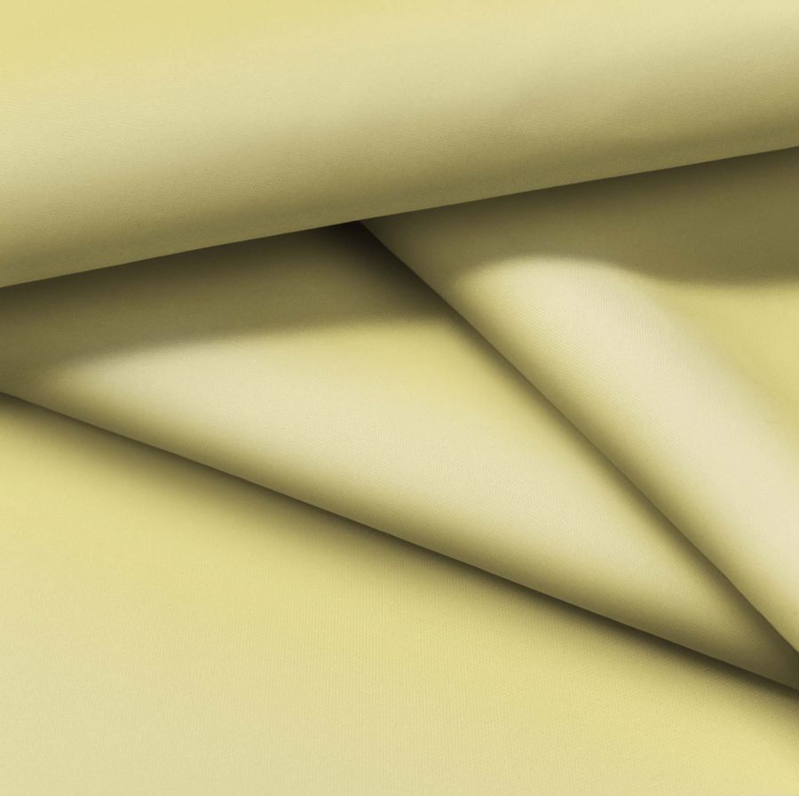 La tela base del tejido es una Tela fina repelente al Agua - Storm, con un gramaje de 70 gr/m2, compuesta de 100% poliéster y con una anchura de 145 cm. El color liso impreso en la tela base es una tonalidad de amarillo cremoso, con CMYK de 10 10 59 0, que le confiere una tonalidad cálida y luminosa a la tela en sí. Esta tonalidad amarilla combina perfectamente con tonos cálidos como marrones y naranjas, así como con tonos más frescos como verdes y azules suaves, aportando la luz necesaria a los tejidos en los que se utilice.