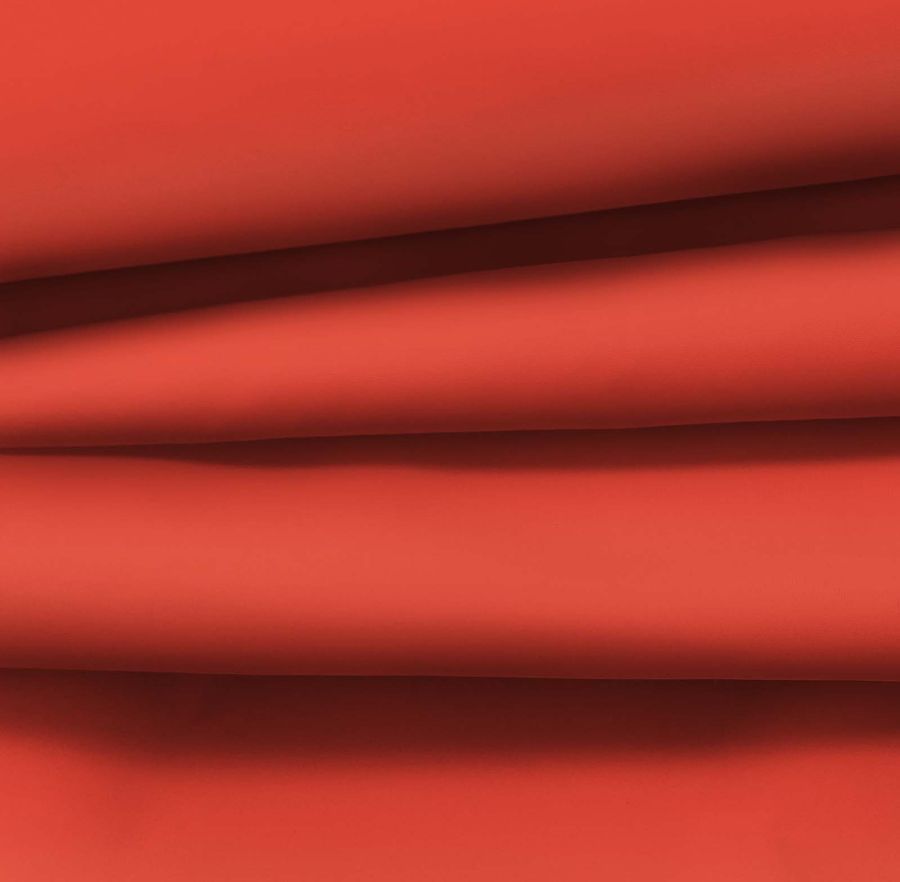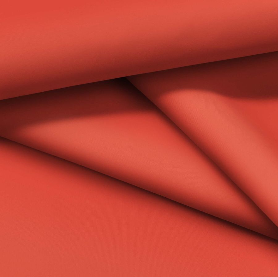 La tela base de la que vamos a hablar es la Tela Fina Repelente al Agua - Storm de tejido técnico con una composición al 100% de poliéster. El color liso impreso es de un intenso rojo cinabrio, que se consigue con una combinación del 3% de tinta cían, un 85% de tinta magenta y un 80% de tinta amarilla, obteniendo un CMYK de 3 85 80 0. Este tono simboliza la pasión, el poder, la energía y la buena suerte. Además, el rojo cinabrio combina especialmente bien con tonos negros, ocres, dorados y plateados.