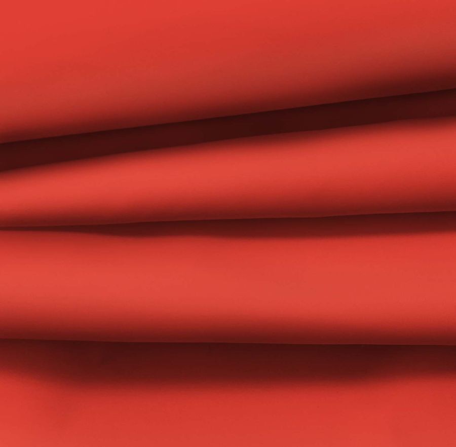 La tela base es la Tela fina repelente al Agua - Storm, un tejido técnico de 100% poliéster con un gramaje de 70 gr/m2 y un ancho de 145 cm. El color liso impreso es un rojo intenso con un CMYK de 5 87 82 0, conocido como rojo CG. Este color secundario es poderoso y evocador, que transmite pasión y energía. Es un color que se combina muy bien con otros colores vivos como el amarillo, el naranja y el verde.