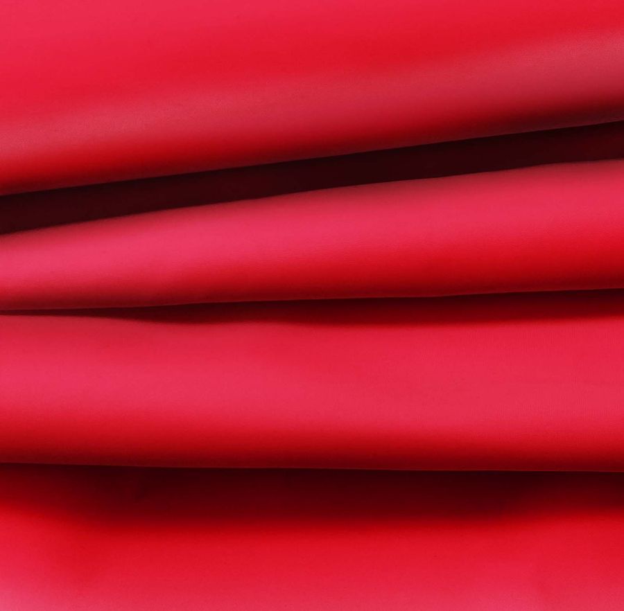 La tela base es la Tela fina repelente al Agua - Storm, una tela técnica de 100% POLIÉSTER con un gramaje de 70 gr/m2 y un ancho de 145 cm. El color liso impreso es el Rojo de Cadmio, con un CMYK de 1 100 89 0. Este tono está lleno de fuerza y energía, simbolizando la pasión y la actividad. Combina perfectamente con el negro, el blanco, el gris y el verde oscuro.